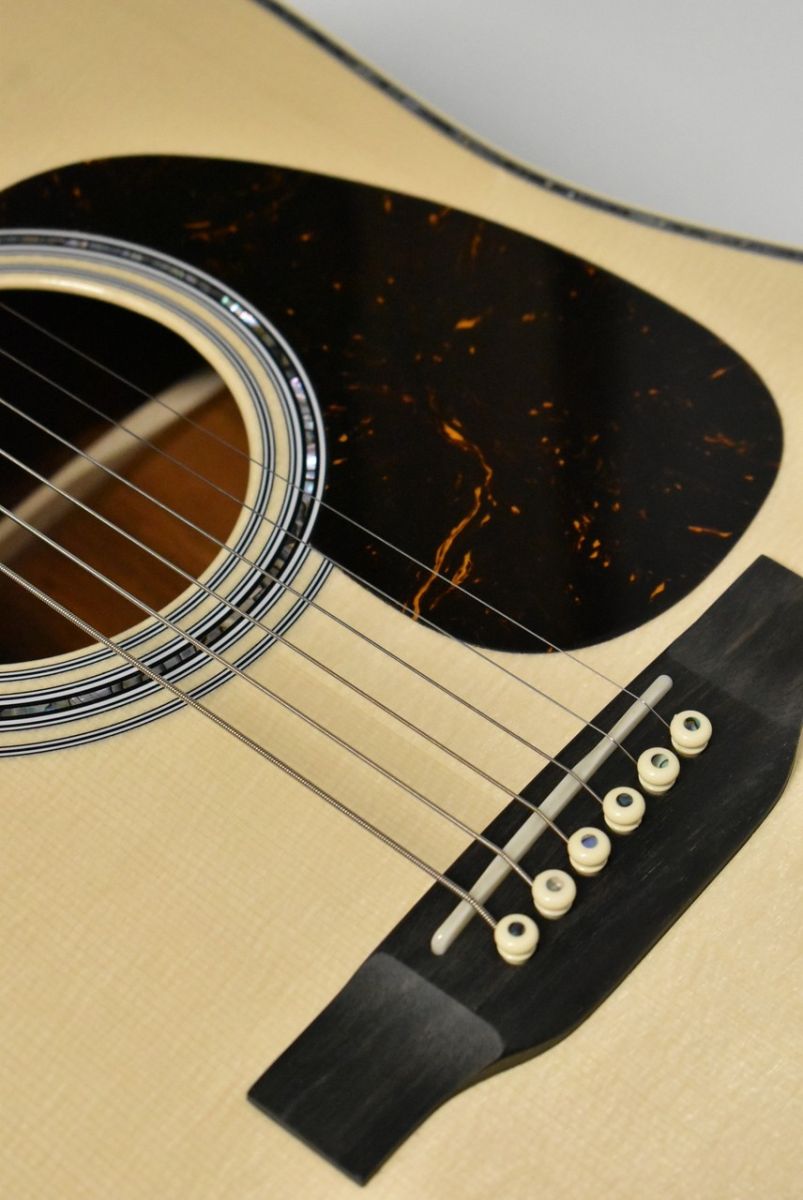 パンチのある低音域と抜けの良い高音域のバランスが絶妙で、ドレッドノートサイズのボディーでありながらも、繊細なフィンガーピッキングにもレスポンスよく反応してくれます。勿論、ストロークでかき鳴らして頂いた際にも、圧倒的な迫力をお楽しみ頂けます。