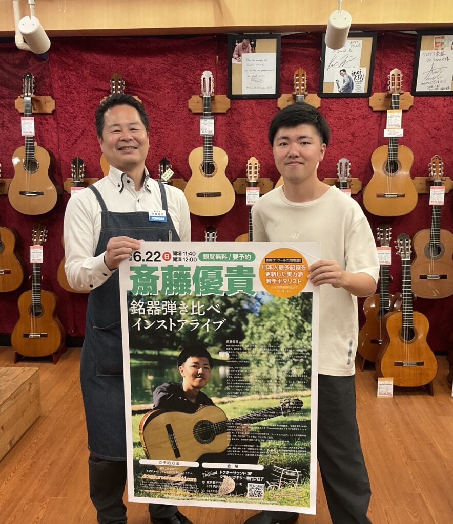 2025年6月22日(日)にドクターサウンド クラシックギター専門フロアにて、「斎藤優貴インストアライブ」を開催しましたので、その模様をお届けします。