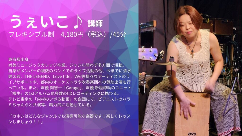 **「叩いてみたい曲がある」「バンドでカホンを担当したい」**という熱意を持った方!はぜひ無料体験レッスンにてお試しください!