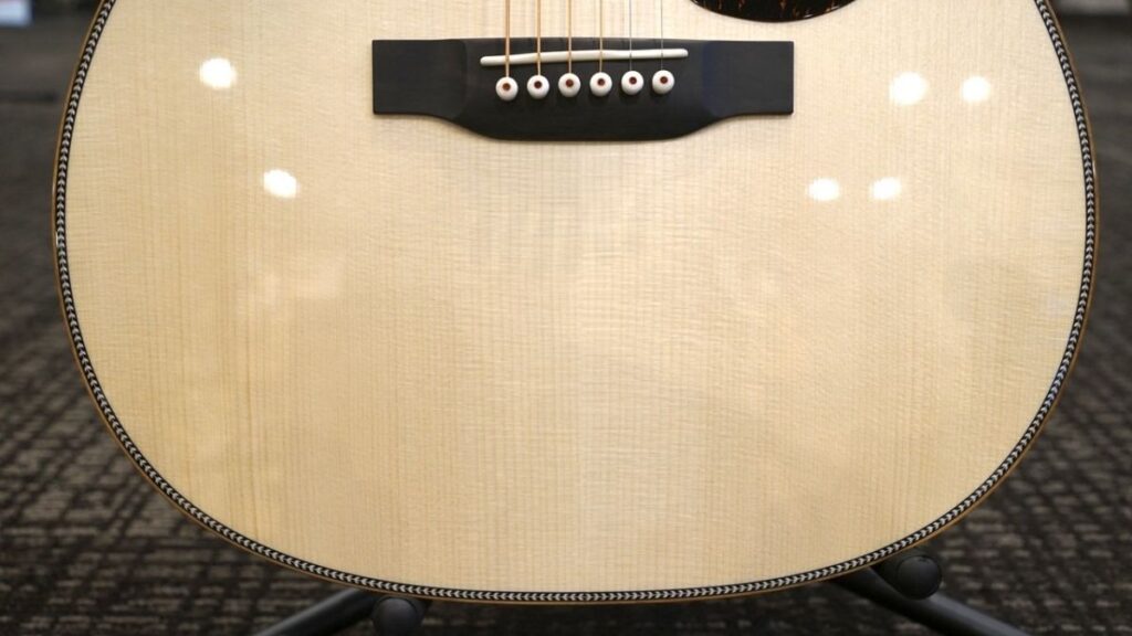 トップをアディロンにし、バインディングをメイプルにするだけでも、だいぶ音色は変わります。