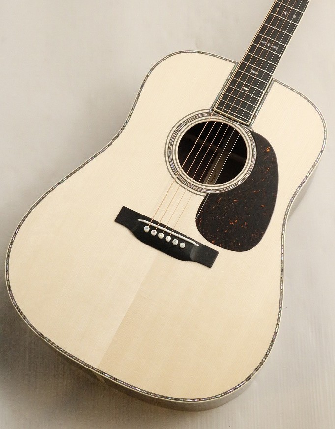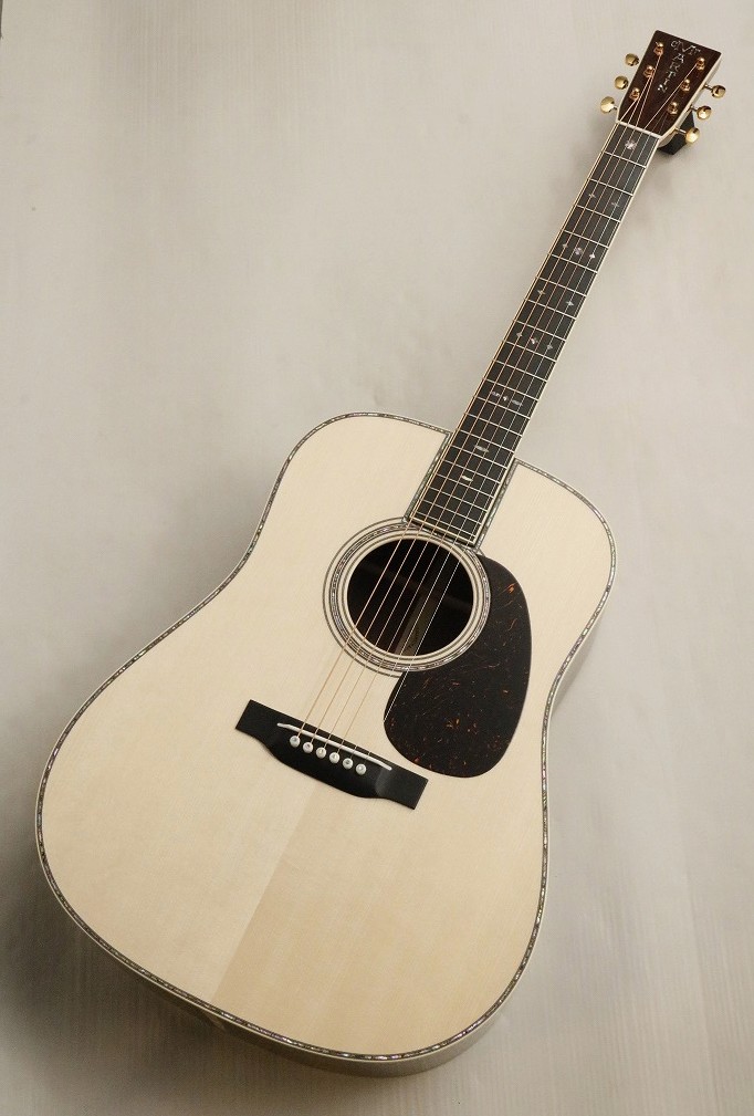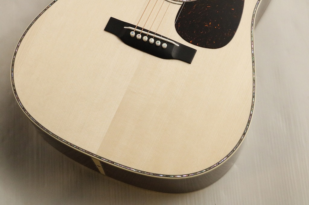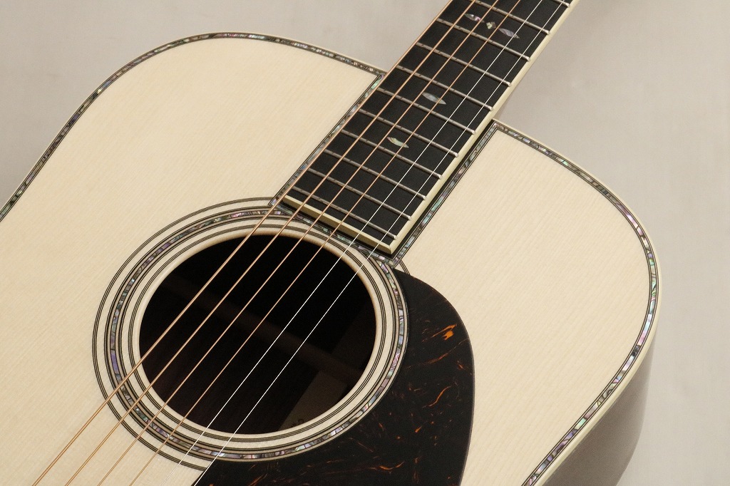 トップ板の経年による色味の変化を楽しめるクリアフィニッシュのトップに、最高グレードの杢目が整った美しいアディロンダックスプルース。サイド・バックには同じくMartin社所有の最高グレードのグアテマラローズウッド。
