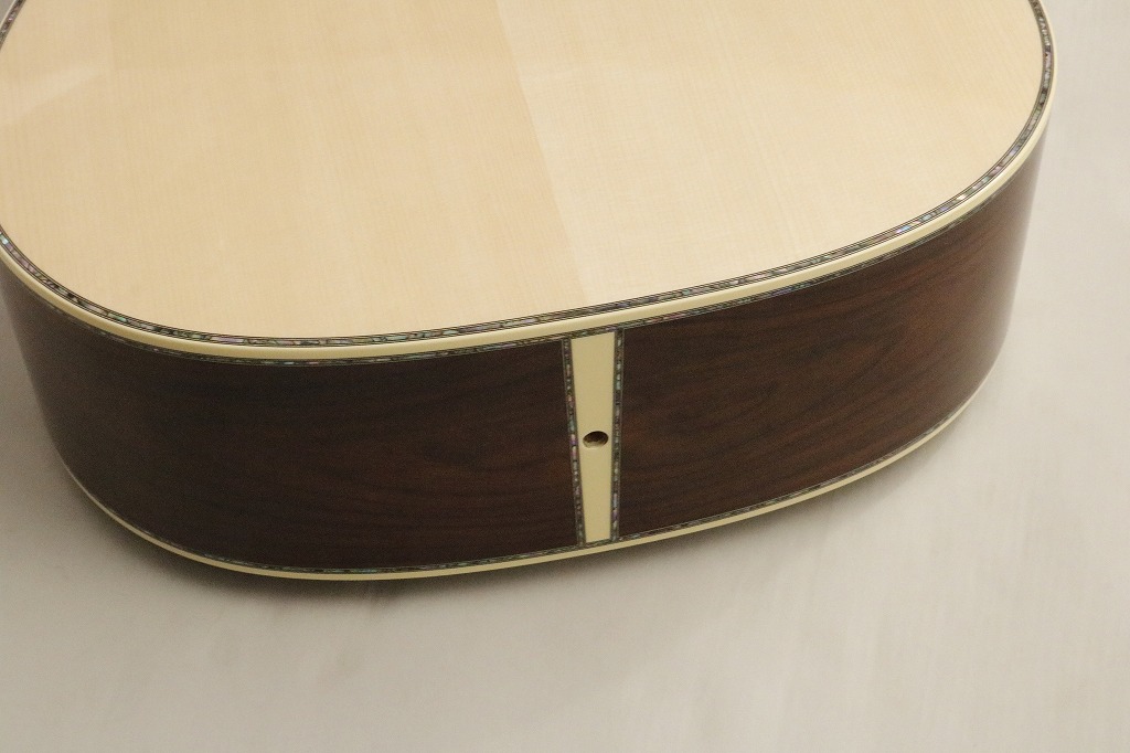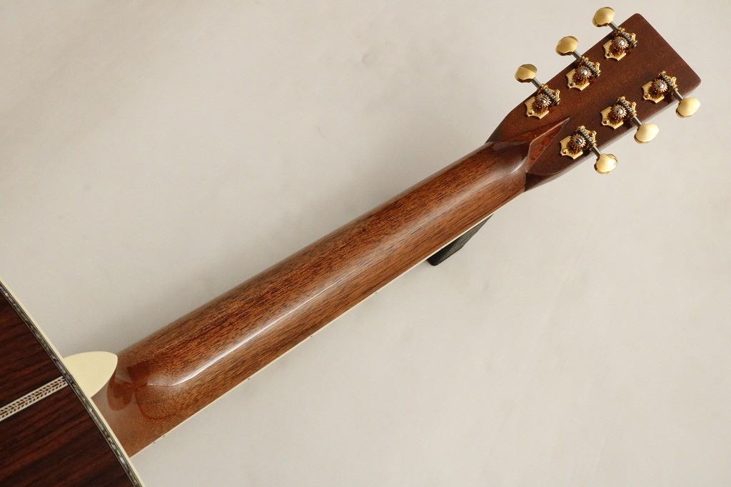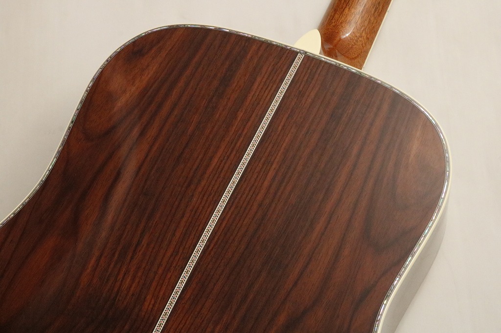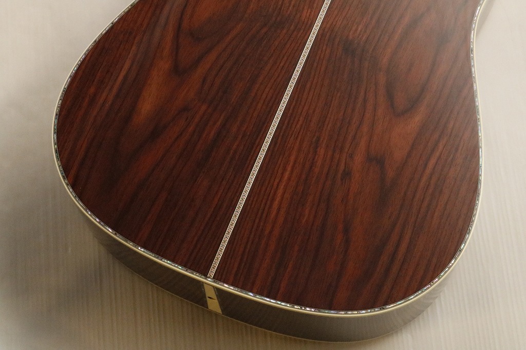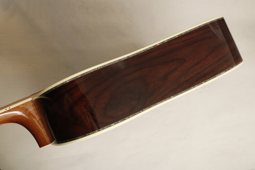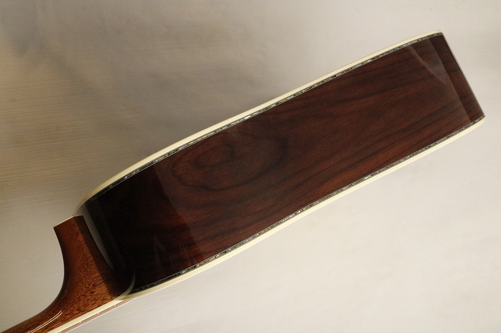 サイド・バックには同じくMartin社所有の最高グレードのグアテマラローズウッド。濃い色味とグアテマラローズウッドの力強さすら感じてしまう鮮明で美しい杢目は見ているだけでも楽しめてしまう美しさ。