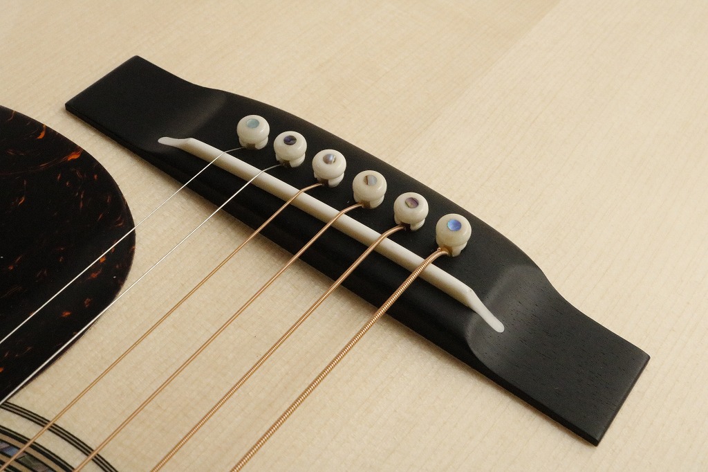 トップ板の経年による色味の変化を楽しめるクリアフィニッシュのトップに、最高グレードの杢目が整った美しいアディロンダックスプルース。
