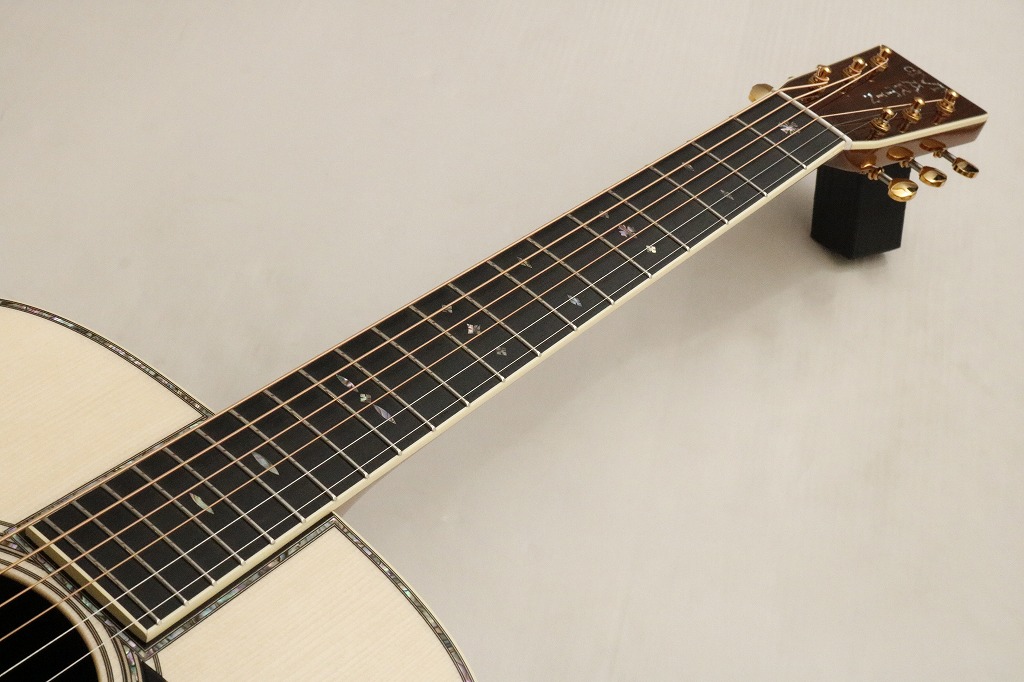 さらにボディの響きの個性を左右するブレーシングにもアディロンダックスプルースを使用。薄く加工されたスキャロップドブレイジングにすべての工程を手作業かつ滑らかに加工を施したGolden Era スタイルのブレーシングを採用しています。