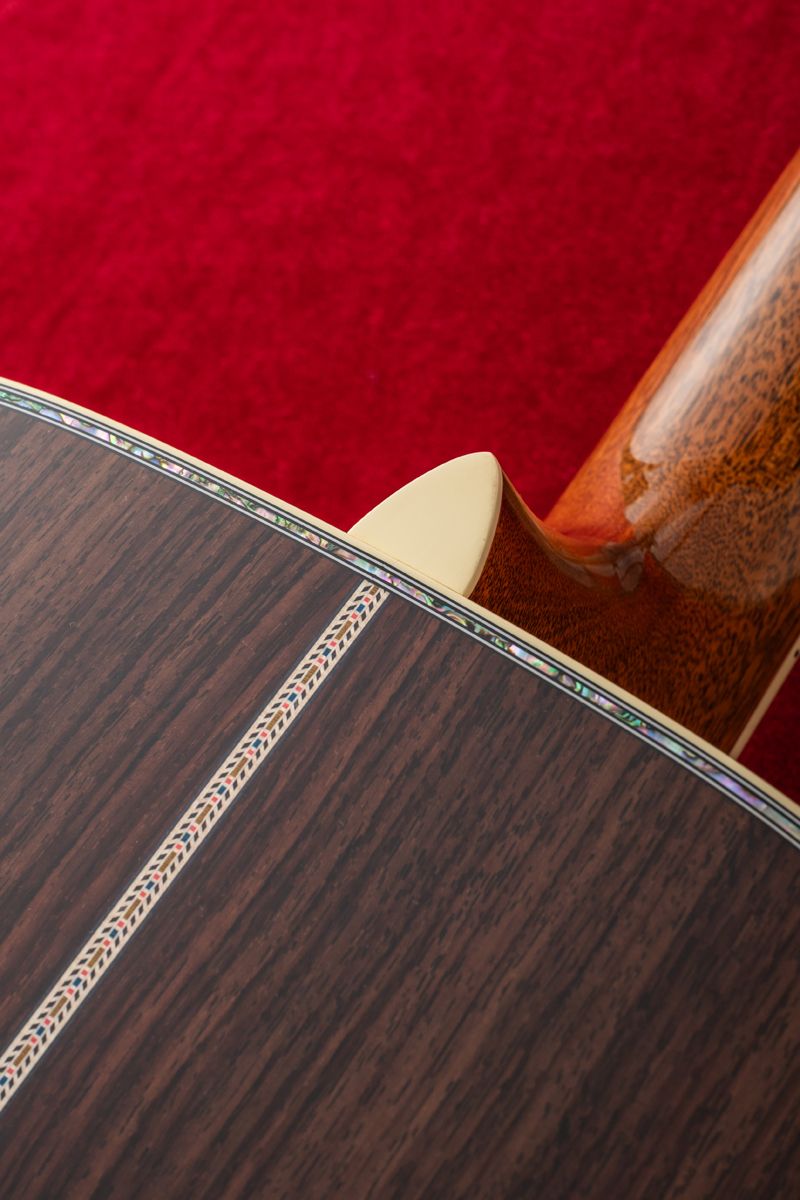サイド&バックにも、最上位のプレミアムグレード・インディアン・ローズウッドを惜しみなく使用し、豊かで深みのある響き。