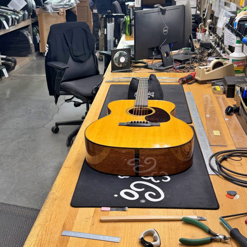 ・工房内にはリペアブースも設けられており、お客様が購入されたギターの調整や修理も直接行われていました。