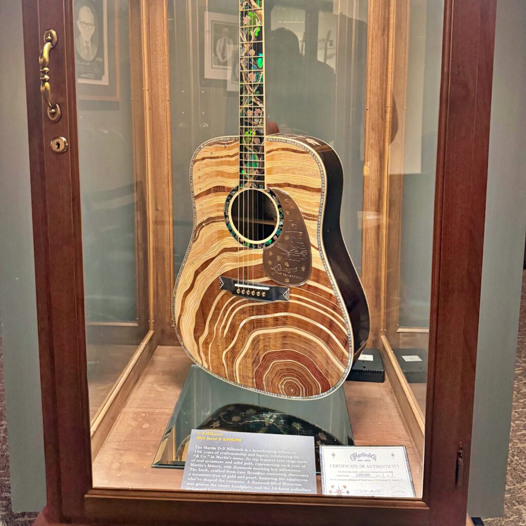 創業190年以上の歴史を誇るマーティン社のギター造りを実際の現場で体感でき、木材の選定から組み込み、塗装、最終セットアップに至るまで、熟練の職人たちによる一つひとつの工程を間近で見学できたことに加え、併設されたマーティン・ミュージアムでは、創業者C.F.マーティンの工房再現や数々のヴィンテージ・名器・希少カスタムモデルを鑑賞でき、ブランドの歴史や文化を知ることができる、驚きと感動の連続の非常に貴重な体験となりました。
