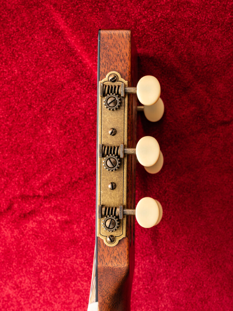 さらに、ネックプロファイルゲージで形状を確認したネックや塗装、ペグを取り付けた後のネックの姿は、皆様もよくご存じの通りです。