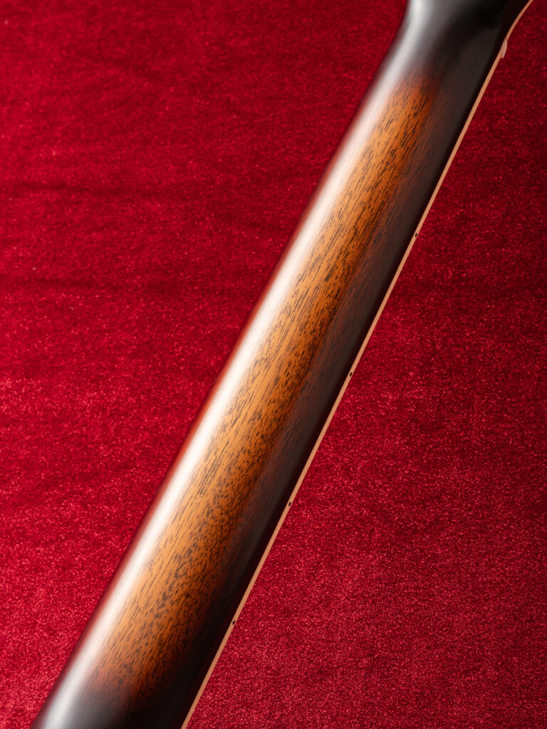 プレミアムグレードのフレイムド・マホガニーを贅沢に使用したオールマホガニーボディのカスタム。