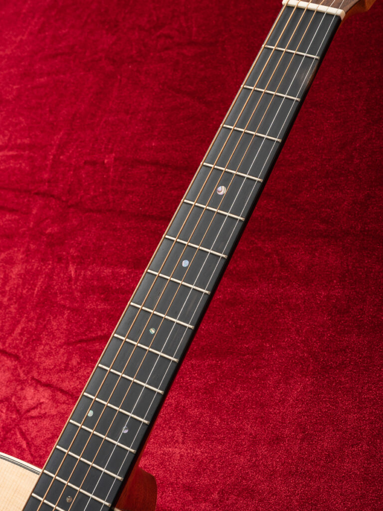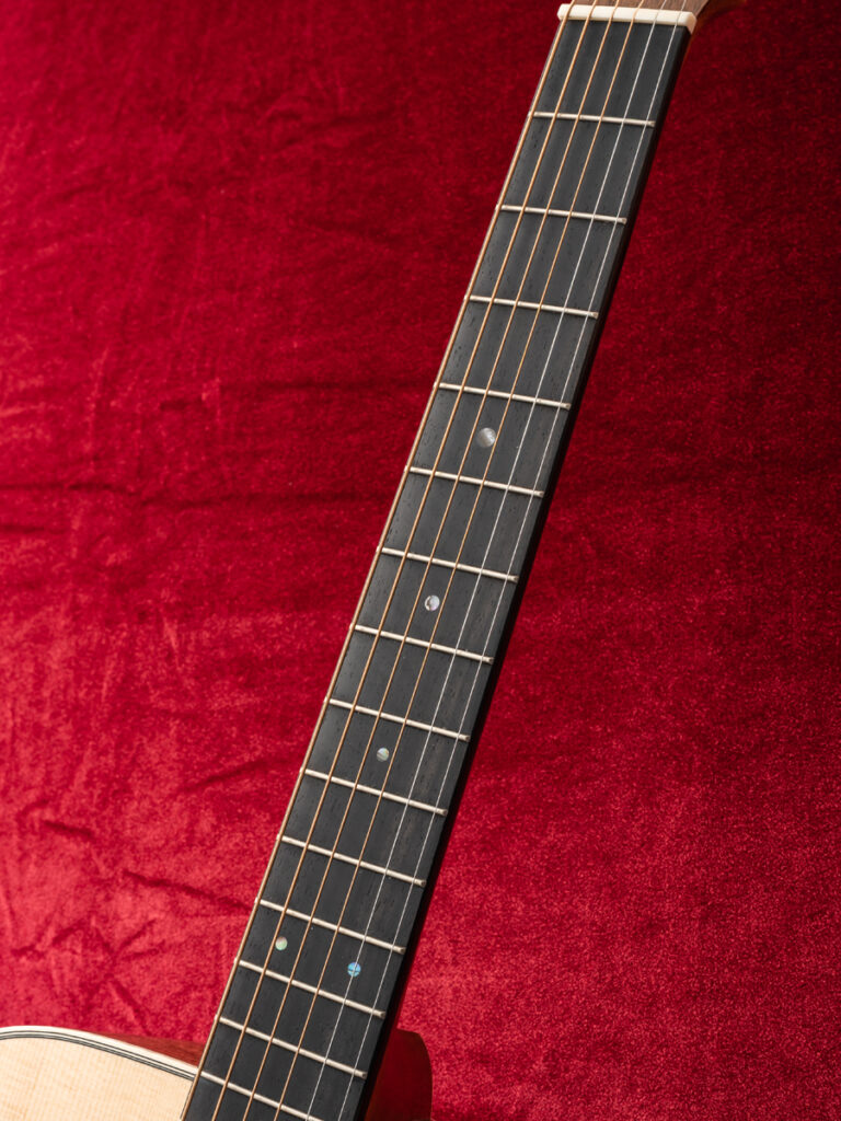 音色は、12フレットジョイントならではのステレオ感のある奥深い音色で、厚みのある低音域、明瞭で力強い中音域、角の取れたまろやかな高音域が美しく調和し、弾くたびに心地よく鳴るサウンドが魅力です。
