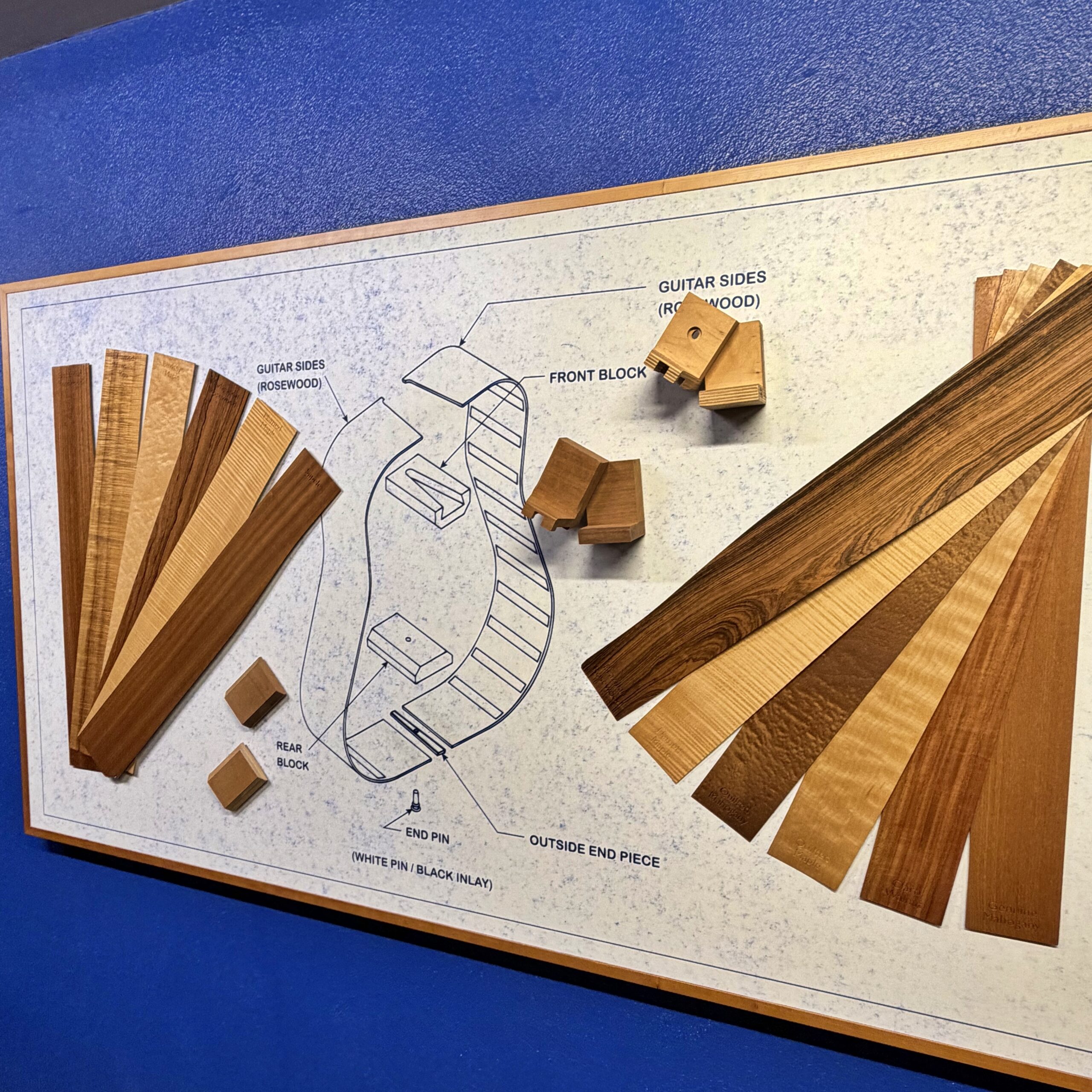 特にサイドバックのジャーマン・ホワイトオークは、あまりにも個性的で美しい杢目をしていたため、即座に選定品として選びました。
