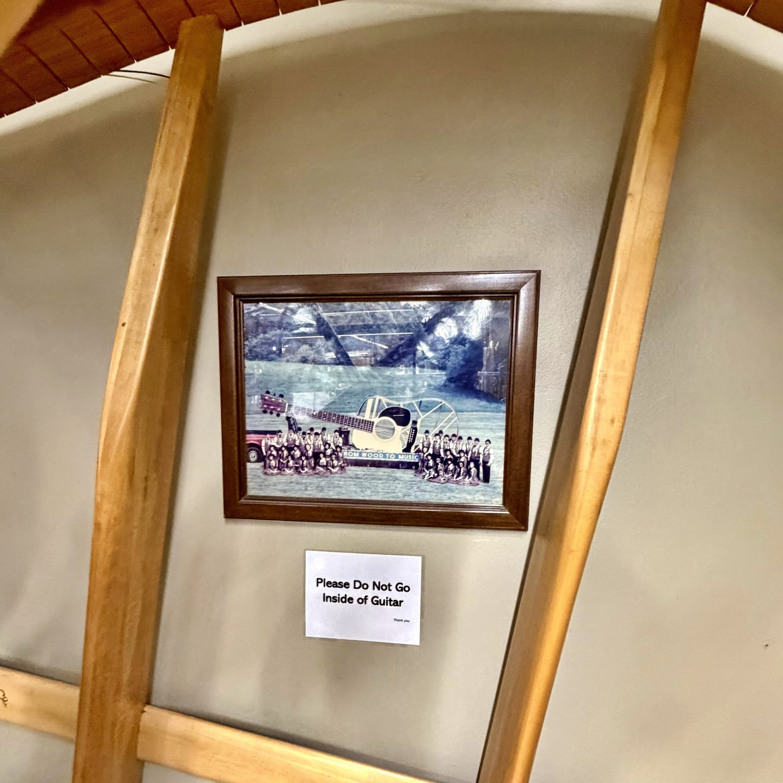 ・まず工場に入ると、真っ先に目に飛び込んでくるのは、”大きなギターのオブジェ”