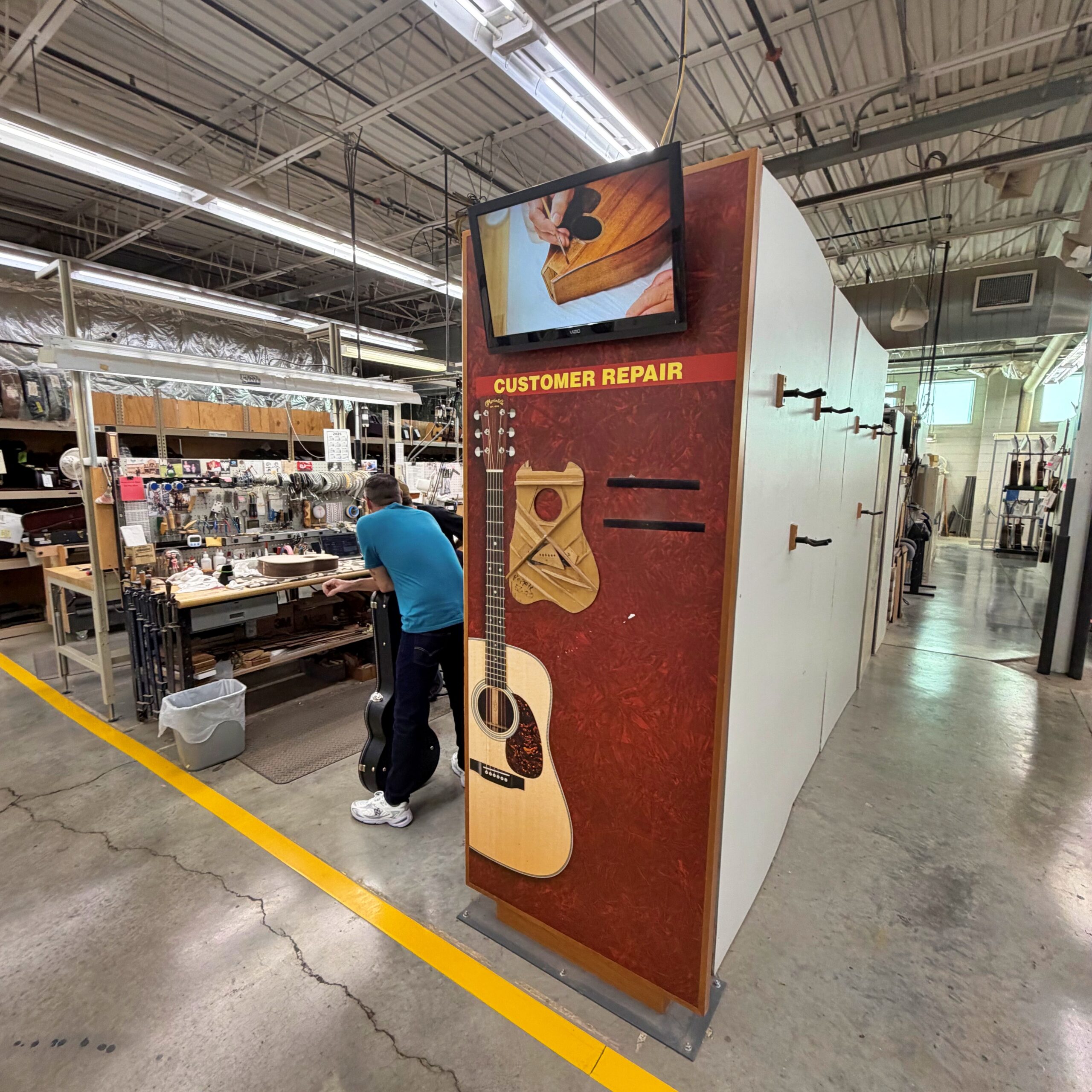 ・工房内にはリペアブースも設けられており、お客様が購入されたギターの調整や修理も直接行われていました。