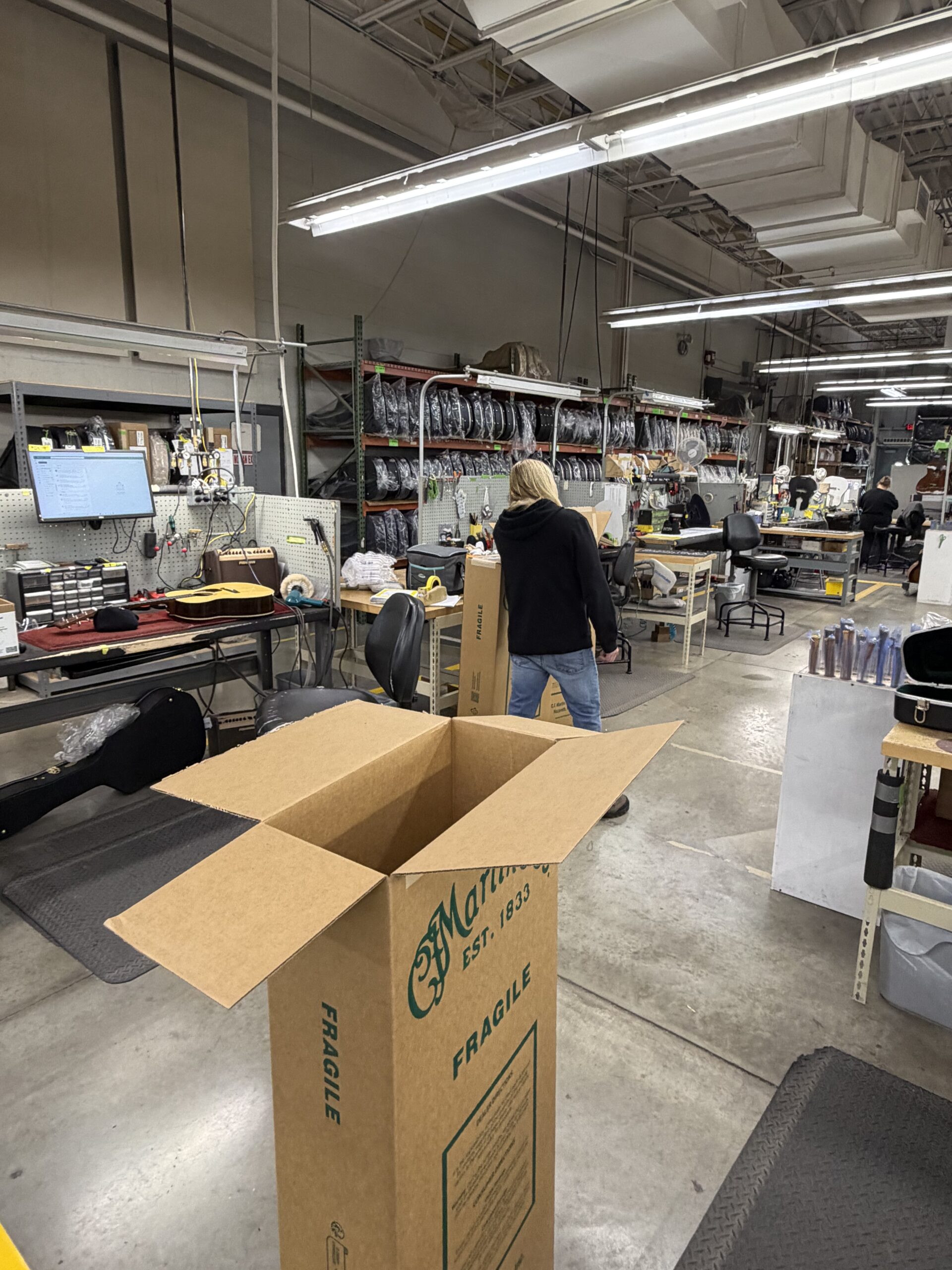 また、当社リペアマンもファクトリーツアーに同行し、現地でリペアの技術を学び、皆様の大切なマーティンギターのリペアに活かしております。