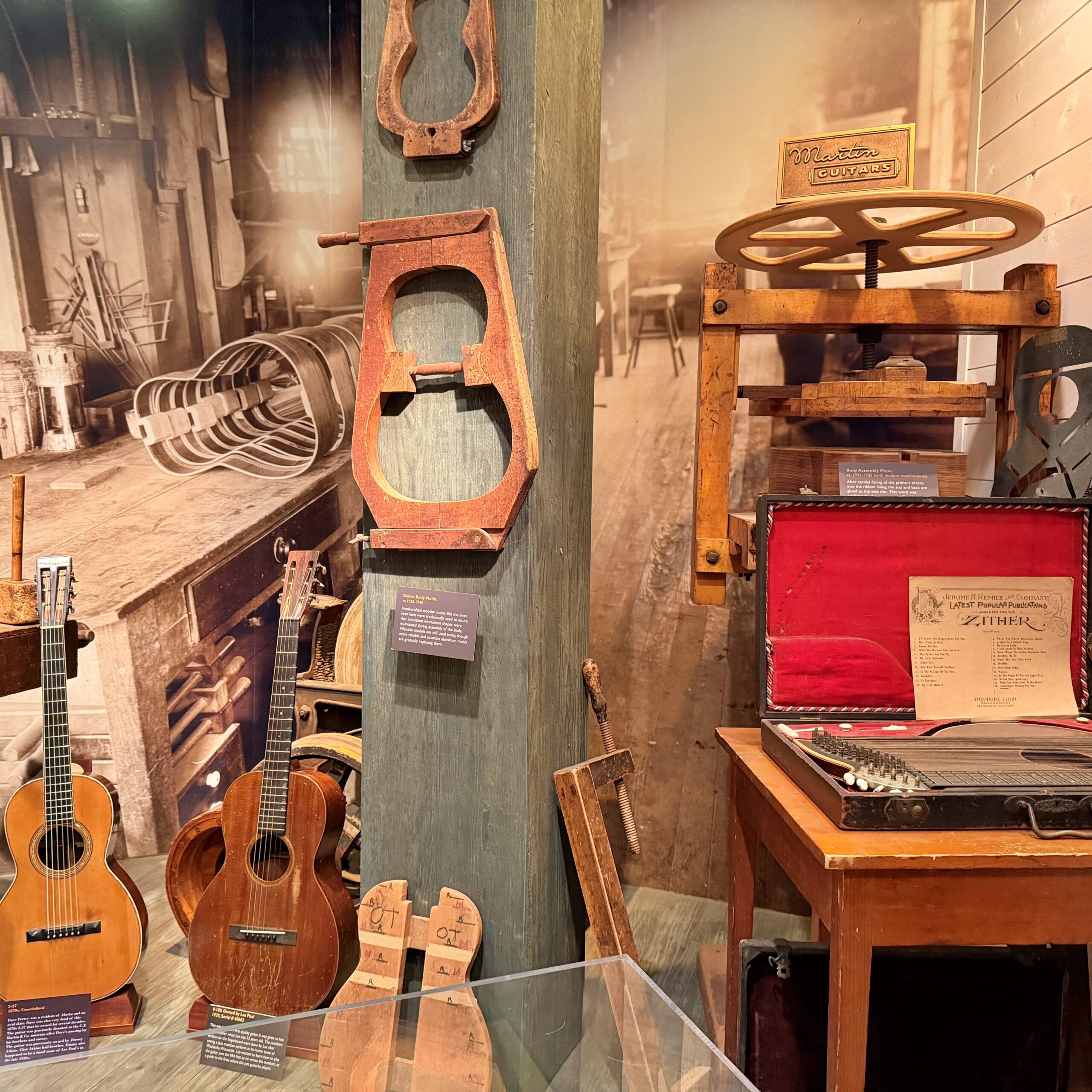 創業者C.F.マーティンの工房や古典的なギター、ヴィンテージやカスタムモデルなどの貴重なギターを間近で見ることができます。