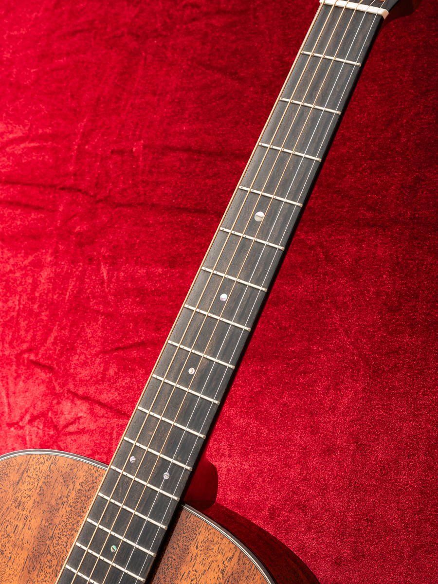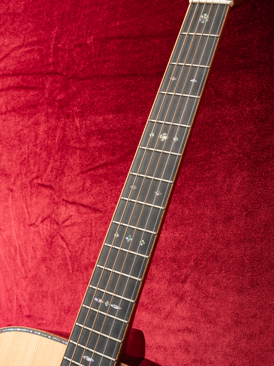 音色は、12フレットジョイントならではのステレオ感のある奥深い音色で、厚みのある低音域、明瞭で力強い中音域、角の取れたまろやかな高音域が美しく調和し、弾くたびに心地よく鳴るサウンドが魅力です。