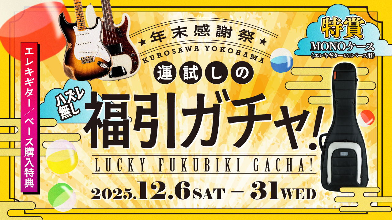 【査定額10%UP】まとめ買い取りキャンペーン 2025.12.03 2本以上で買取査定額10%UP! 期間:12/6(土)~12/31(水) 期間中、横浜店でエレキギターまたはベースを2本以上お売りいただいたお客様へは特別に買取査定額を10%アップさせていただきます。年末大掃除シーズンのこの時期にぜひご相談ください! ※楽器の状態等によって買い取りが出来ない場合もございます。予めご了承ください。 WEBでもカンタン査定実施中! 楽器の買い取りは楽器のプロにお任せください。WEBでも手軽に買取査定が可能です。その他買い取りに関するご不明点はこちらをご確認ください。 詳細はこちら