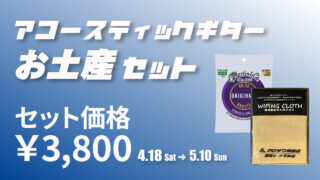 期間中、マーチン弦M140またはM170の3セットパックと福岡店クロスのお得なセットを販売!