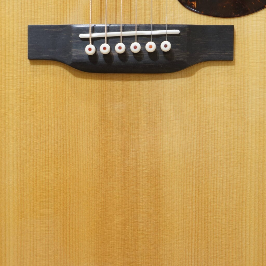 トップ材はあくまでOM-21や000-28のサウンドをベースにイメージしている為、アディロンダックスプルースやイングルマンスプルースを使用せず、シトカスプルースを選択しております。