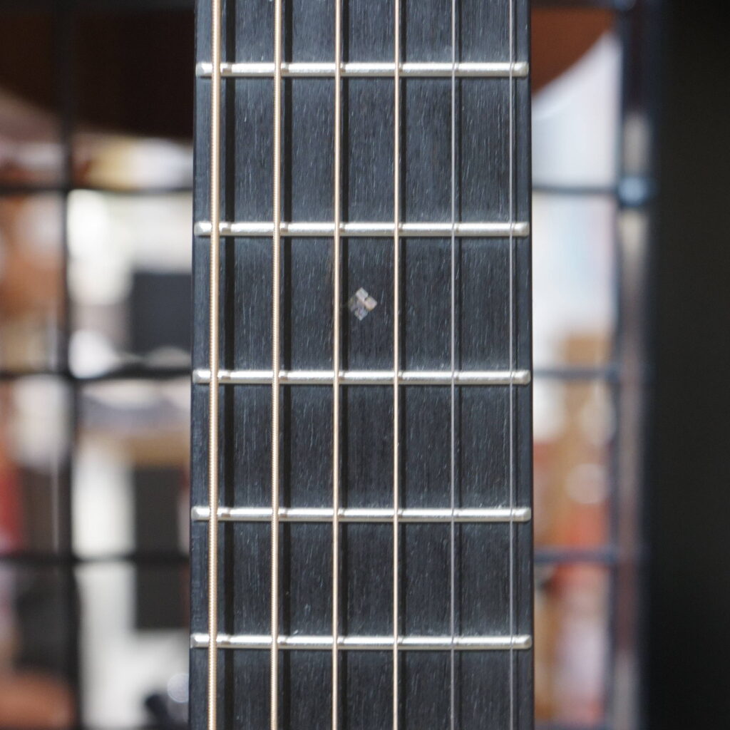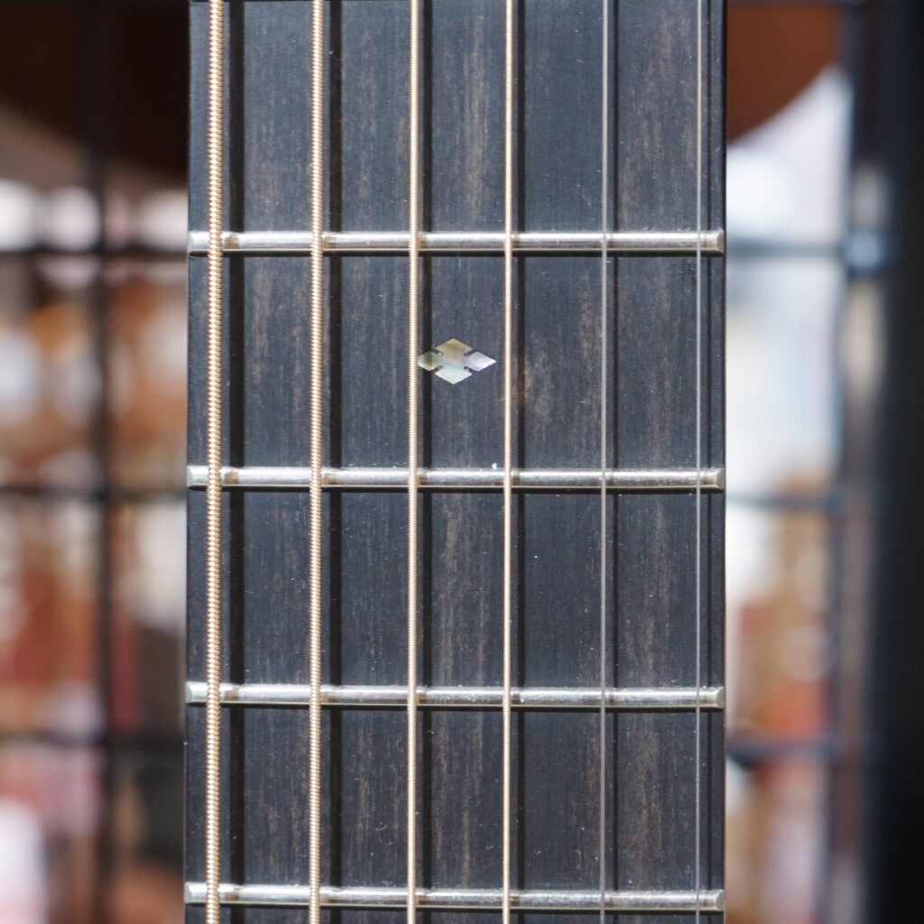 現行のマーチンギターの殆どのモデルはナット幅は44.5mmの為、そちらと比べると細身となっておりますので、手が小さ目の方にも弾きやすくなっています。