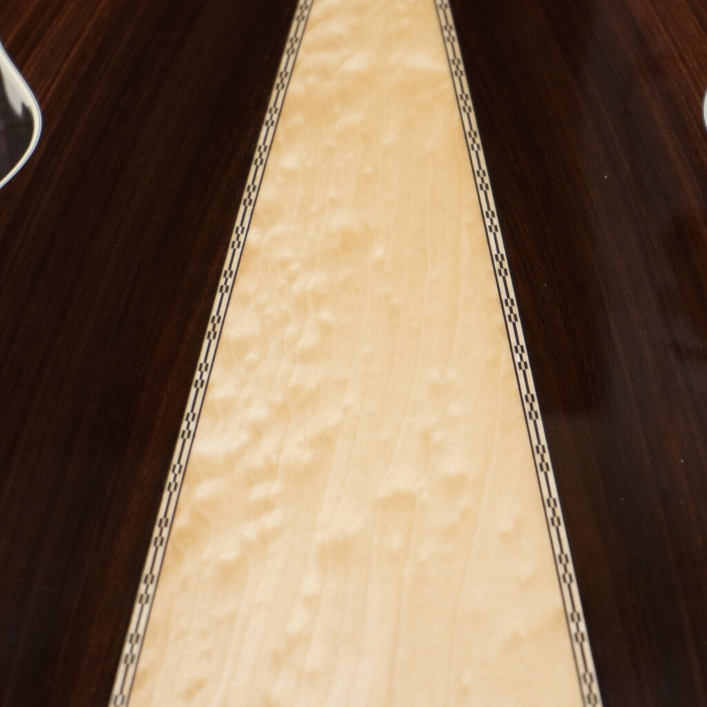 多くのアコースティックギターの裏面は、2枚の板を張り合わせた2ピースバックですが、稀に3枚の板を合わせた3ピースバックのモデルも存在します。