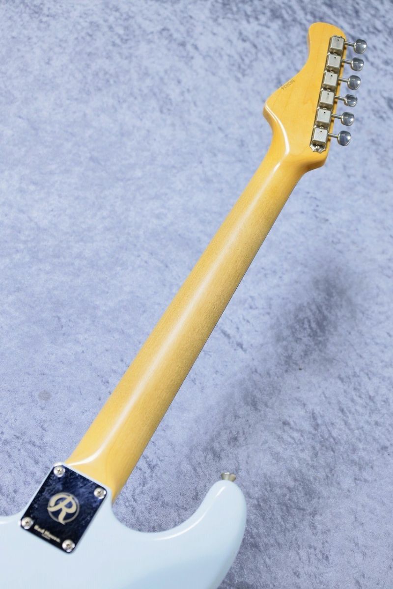 ネックはRed Houseの標準であるUVシェイプを選択。細すぎず・太すぎず・丸みを感じるしっかりとした握り応えですが、非常に持ちやすい不思議なネック。スタッフが選定したフレイムメイプルをネックに採用し、艶のあるローズウッドにが非常に高級な印象です。ミディアムジャンボフレットに9.5R、ストラトらしさを残しつつプレイヤビリティにも寄り添った考え抜かれたスペックは、長年の経験があるビルダーならではの思想です。