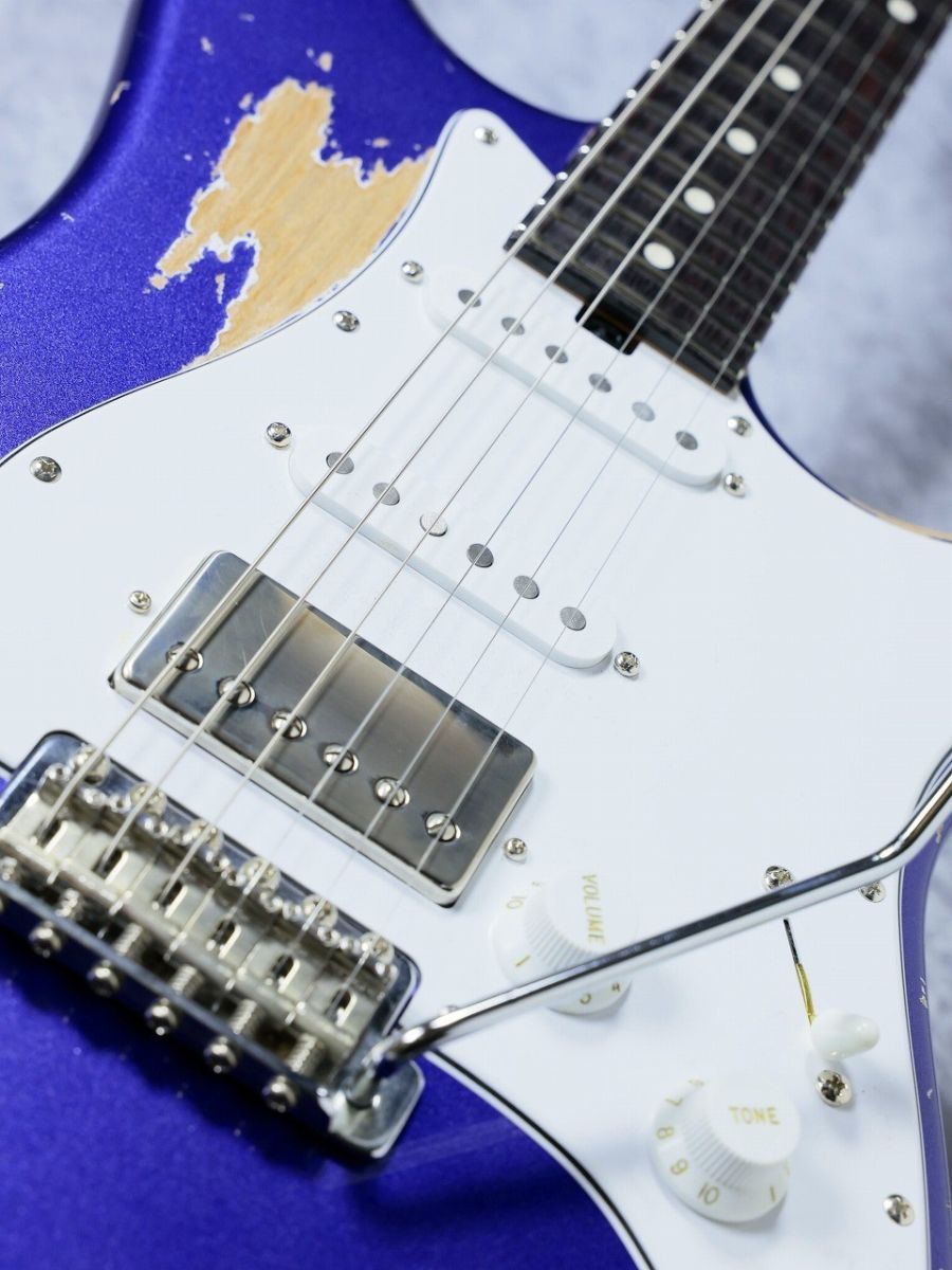話題の国産ブランド「Red House Guitars」より、ピッコラストラトキャスターの特注品が入荷いたしました!今回は探してもなかなか見つけることができない、紫色のレリックが超かっこいいです。こだわって気持ち青が強い紫色にしてもらったので、舞台映えも抜群。是非ガシガシ弾いて頂きたい1本です。