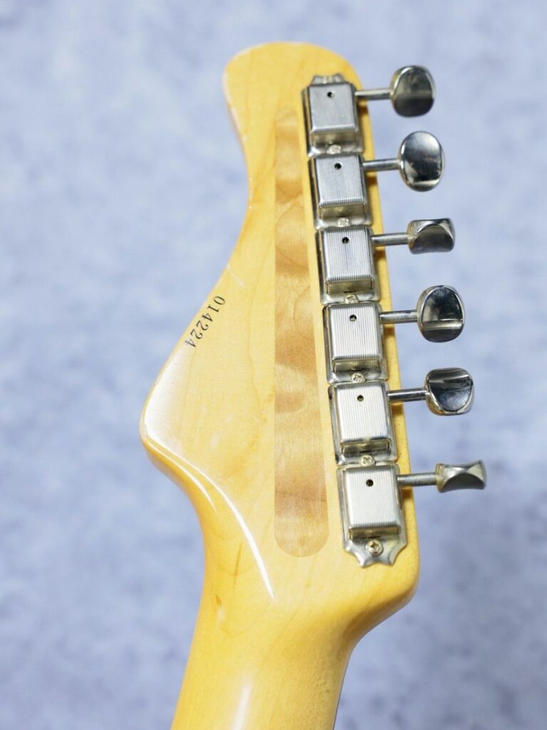 バランスの良いアルダーを採用し、「ヘヴィエイジド」で仕上げていただきました。わざとすぎないエイジングが非常にリアルな質感で、担当も驚いております。<書く>手法ではなく、様々な方法を駆使して自然なウェザーチェックを入れております。リアルで上品なエイジングはRed Houseならではの見どころの一つです!!是非手に取って実機で確認していただきたい仕上がりです。今回の拘りポイントは、下地の白をチラ見せしたかったため、あえて見えやすいような剥がしを行ってもらいました。