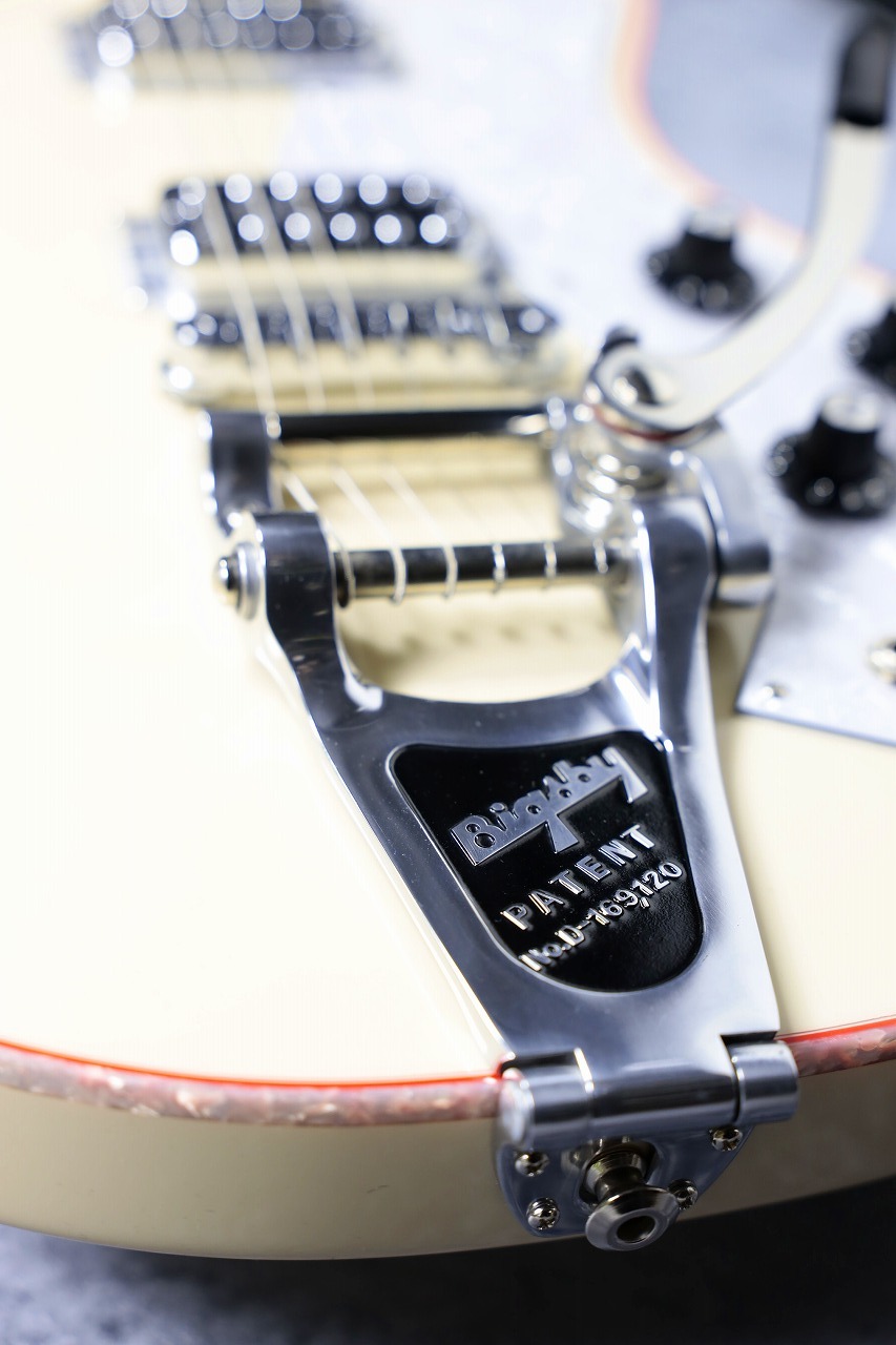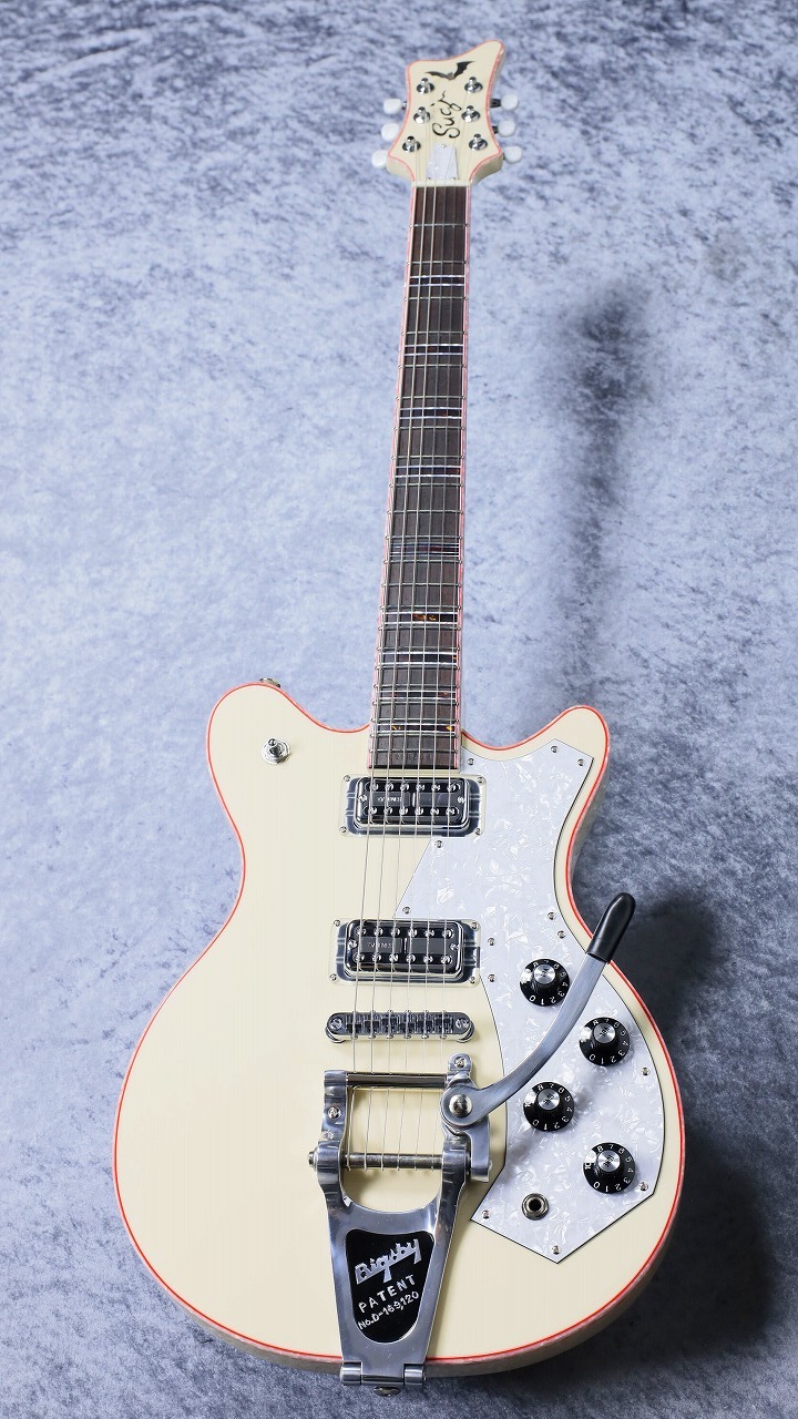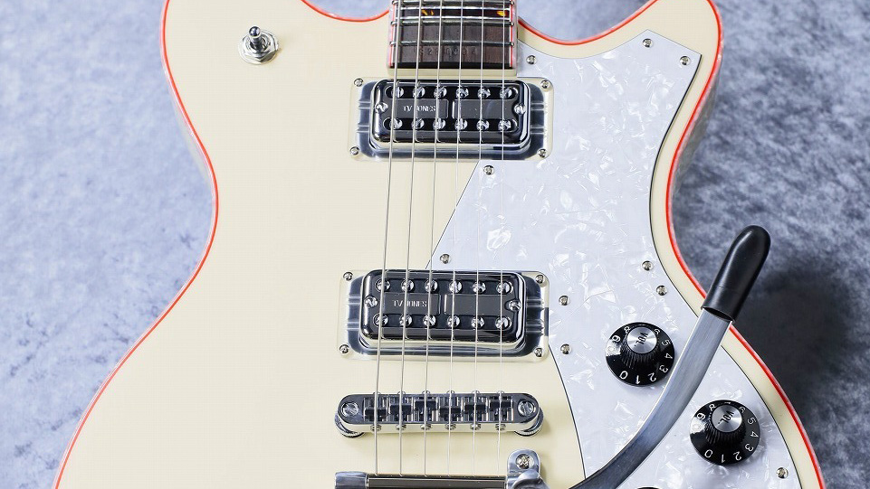 ギタリストのヒラマミキオ氏とのコラボレーションで誕生したコルセール。一度見たら忘れないお洒落なルックスです。Bigsbyトレモロアームが搭載されており、フィルタートロンも搭載されているため、少しグレッチっぽい雰囲気が有ったり、レトロな雰囲気もあるようで新しい雰囲気もあり不思議な1本です。