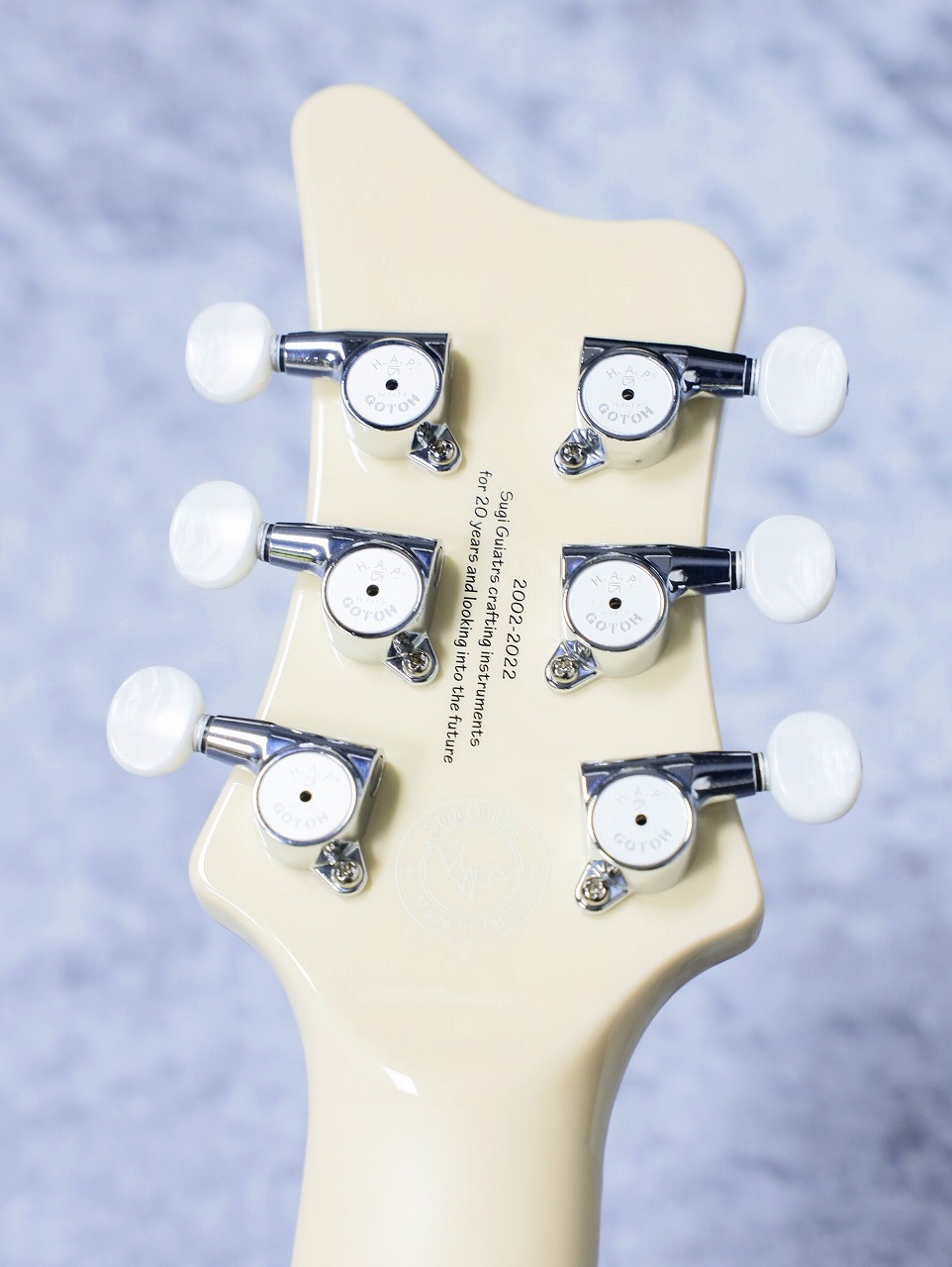 入荷本数の少ないSugiブランドより、Sugi創立20周年を記念した限定モデルが登場いたしました!ビザールギターを思わせる外観が一度見たら忘れられない1本となっております。本当にとってもカッコ良い仕上がりは、ステージ映えを意識したSugiのデザインならではです。