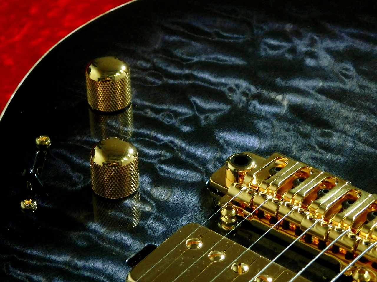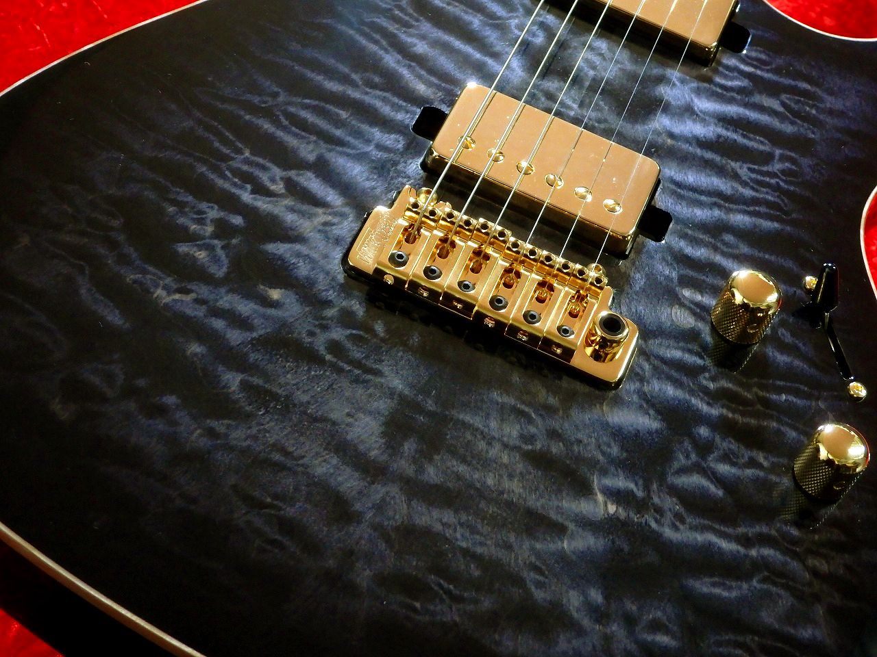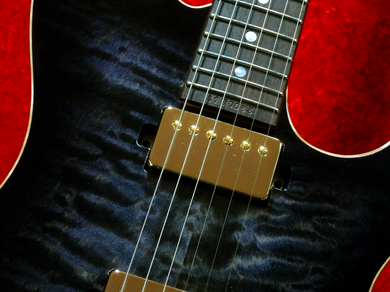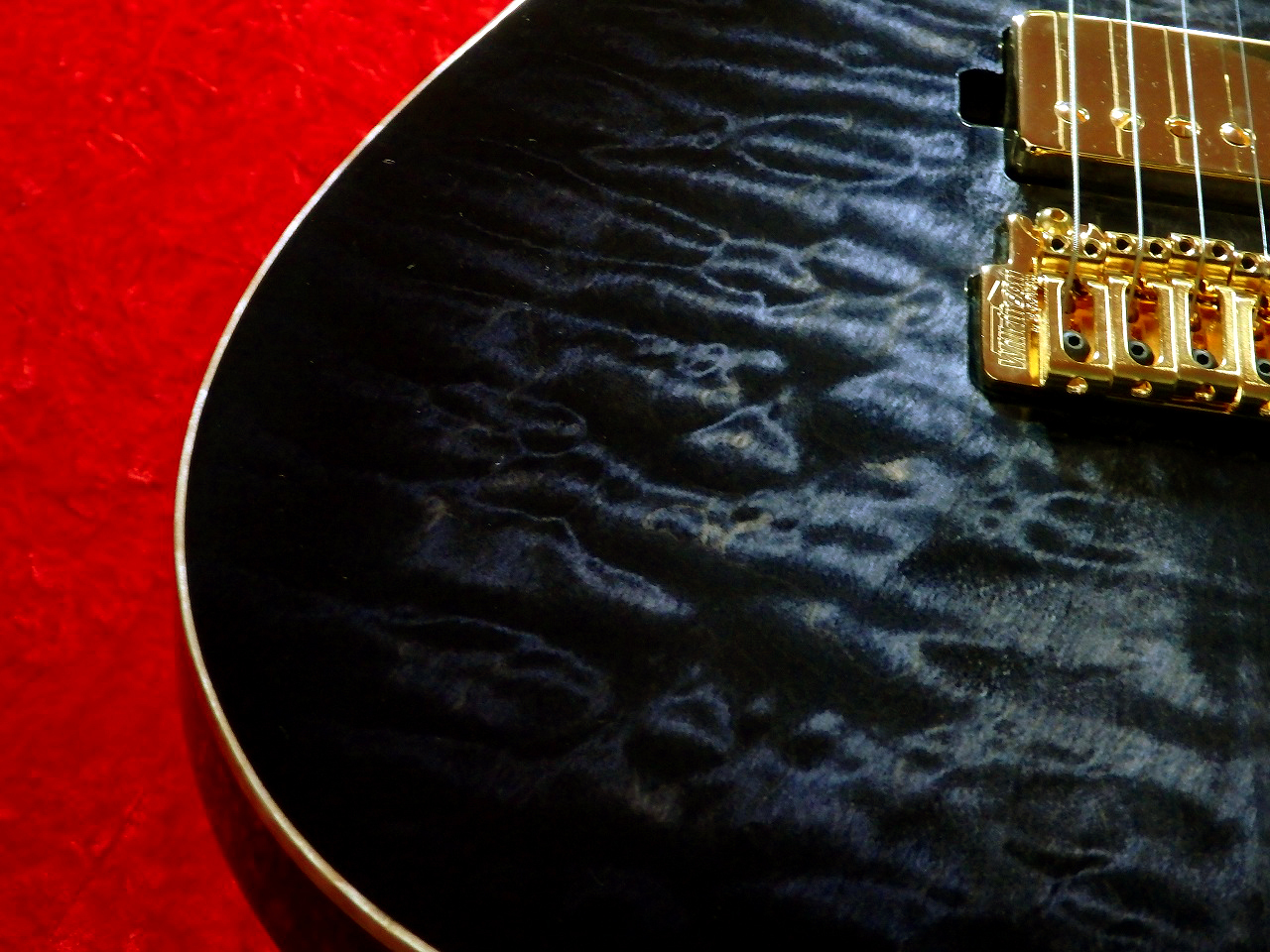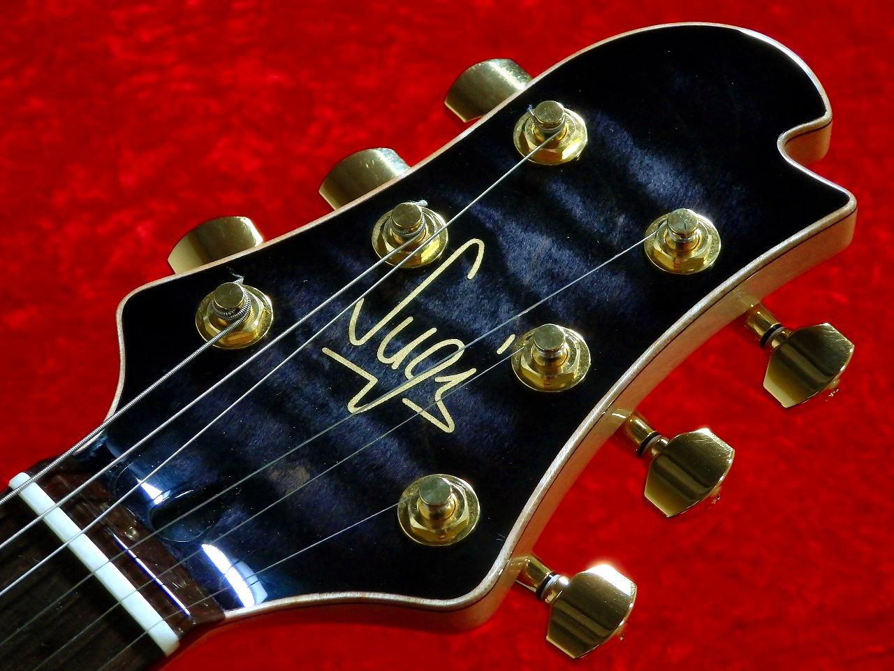 シースルーブラックから覗く揺れる杢目がたまらなくカッコいい!!ゴールドパーツも相まって鮮やかながら落ち着きをもった最高の仕上げとなっております。国産ハイエンドの最高峰、憧れのSugiギターを是非この機会にいかがでしょうか。