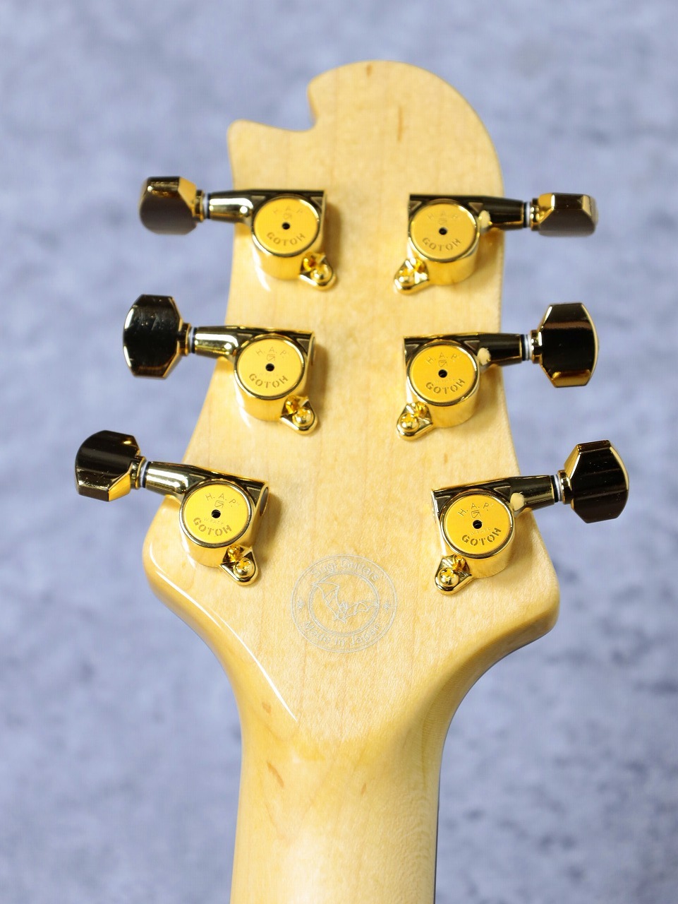 角度を変えると動きを見せてくれるフレイムメイプルは木材の良いSugiならではでございます。ゴールドパーツも相まって鮮やかながら落ち着きをもった最高の仕上げとなっております。