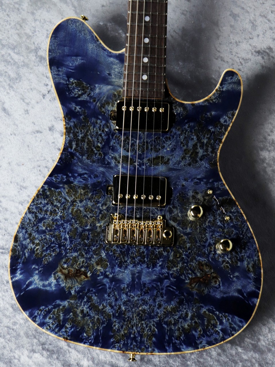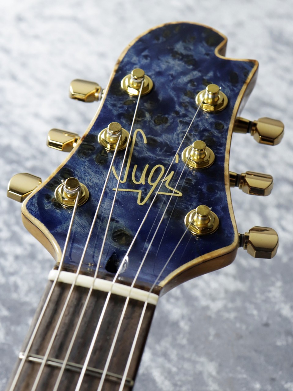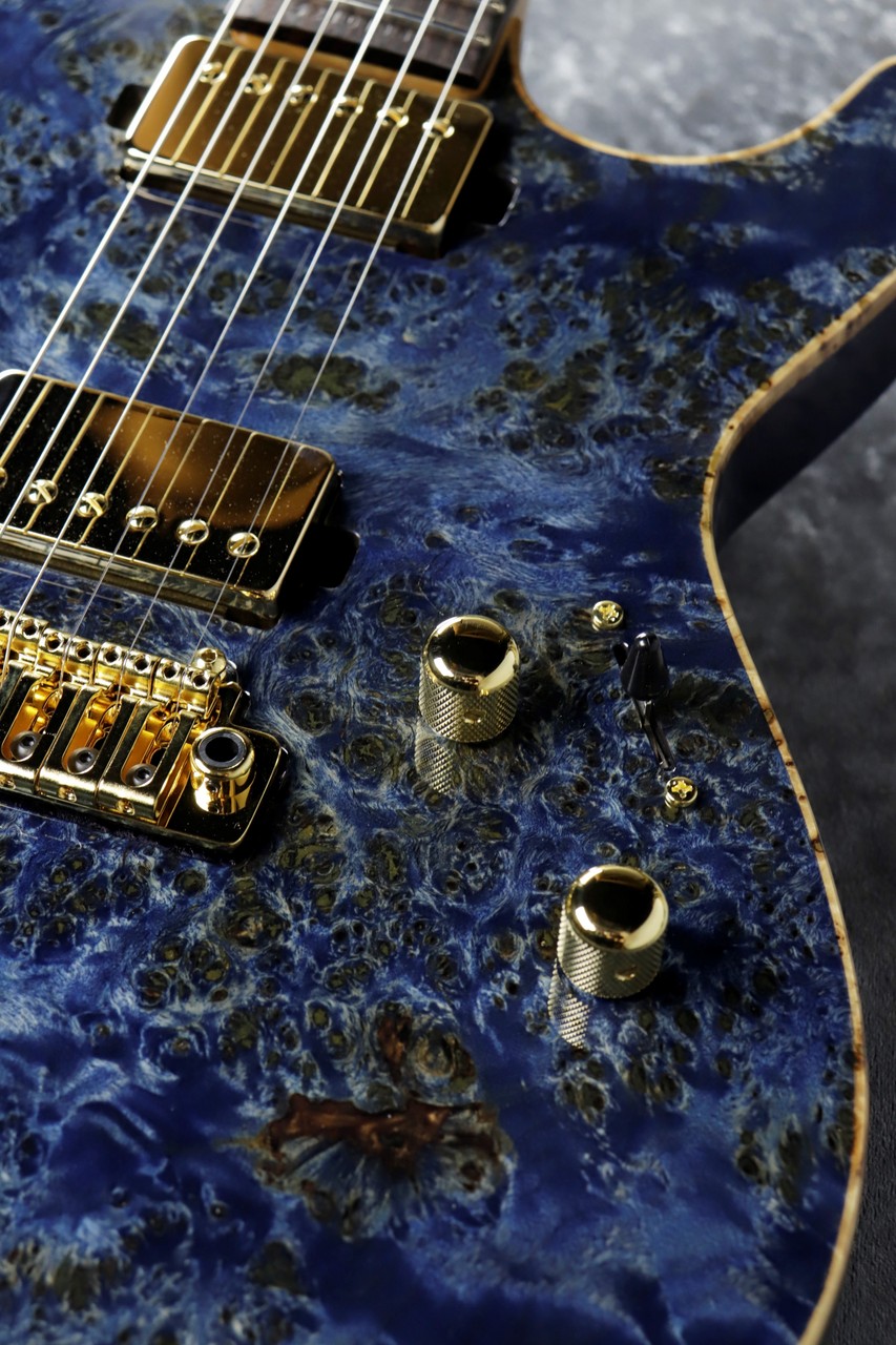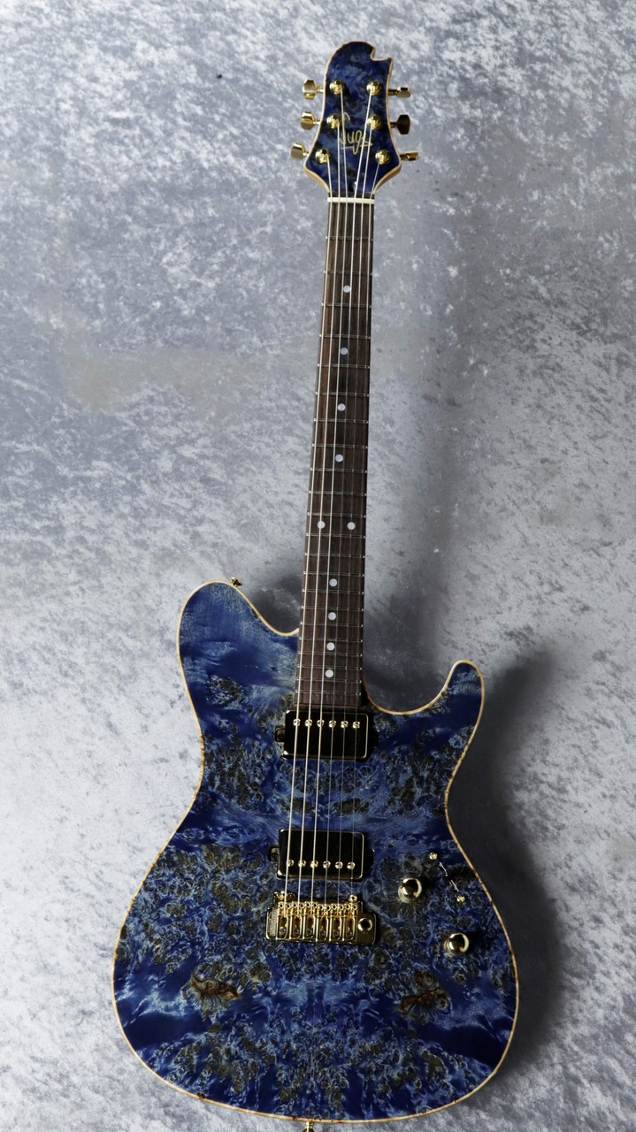 深いロイヤルブルーから覗く揺れる杢目がたまらなくカッコいいです・・・ゴールドパーツも相まって鮮やかながら落ち着きをもった最高の仕上げとなっております。
