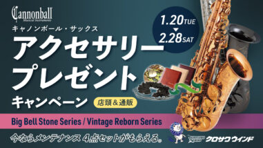 クロサワ楽器店 【Cannonball】アクセサリープレゼント キャンペーン 今ならメンテナンス4点セットがもらえる。キャンペーン期間中にキャノンボールのサックスをご購入いただいた方全員に、メンテナンスに役立つ小物4点セットをプレゼント。プレゼント品1.Cannonballドラゴンスワブ効率よく水分を除去する、キャノ... 2026.01.15 クロサワウインドクロサワウインド お茶の水店クロサワウインド 名古屋店クロサワウインド 横浜店クロサワウインド 町田店クロサワ楽器店サキソフォン・ラボ