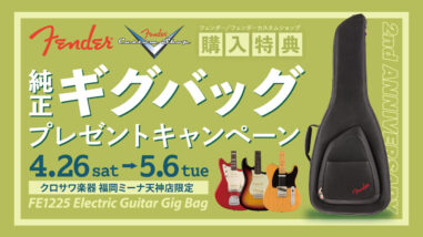 いま、新品のFender USAまたは Custom Shop製品をご購入いただいたお客様には、メーカー純正のギグバッグをプレゼント!