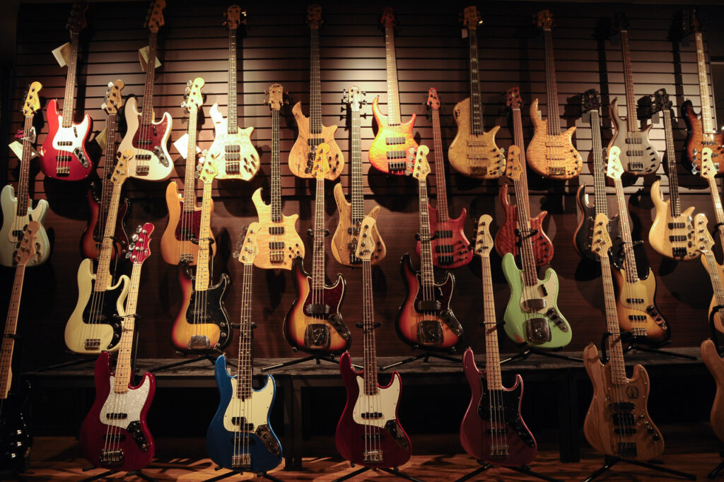 エレキギター、エレキベース、アコースティックギター、クラシックギター、ウクレレ、エフェクター、アンプ、アクセサリー等
