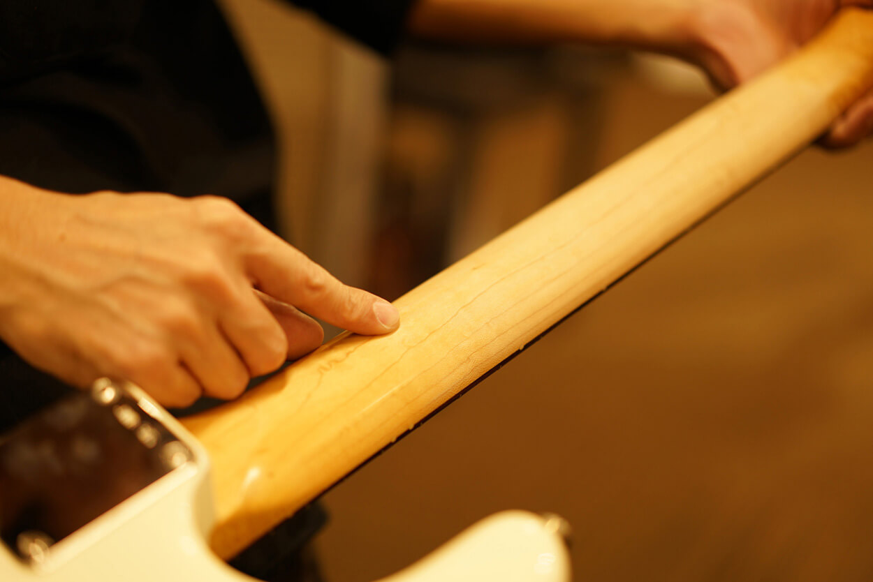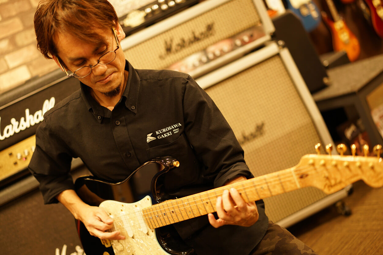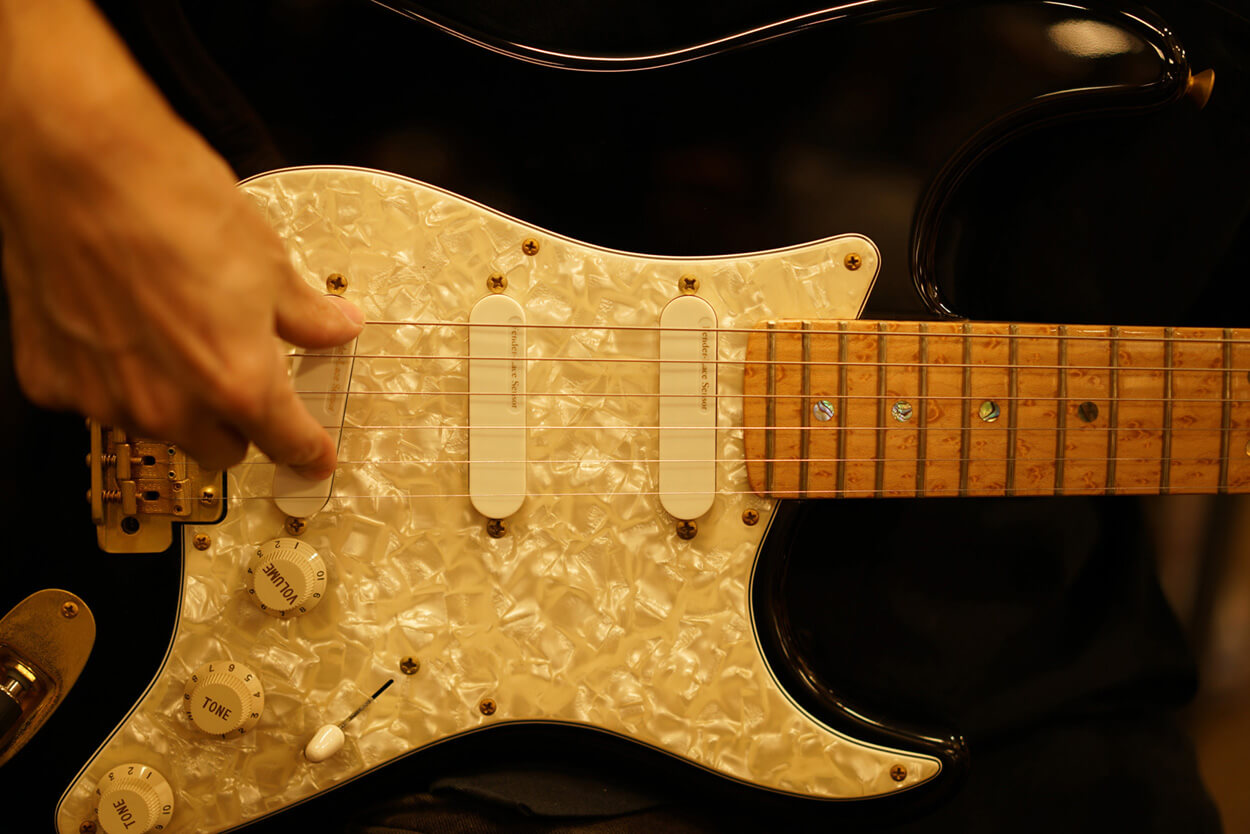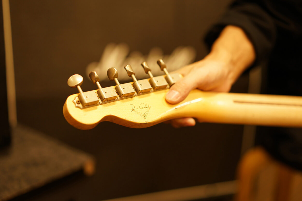 数々のヴィンテージ・ギターのリペア作業やフェンダー社で培った技術、経験を基に、とても完成度の高いストラト・モデルを作り上げています。