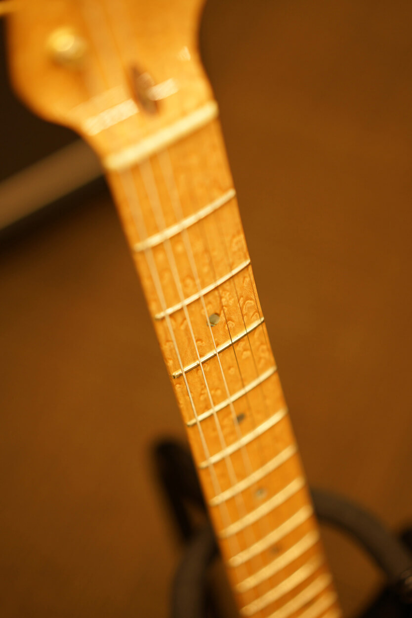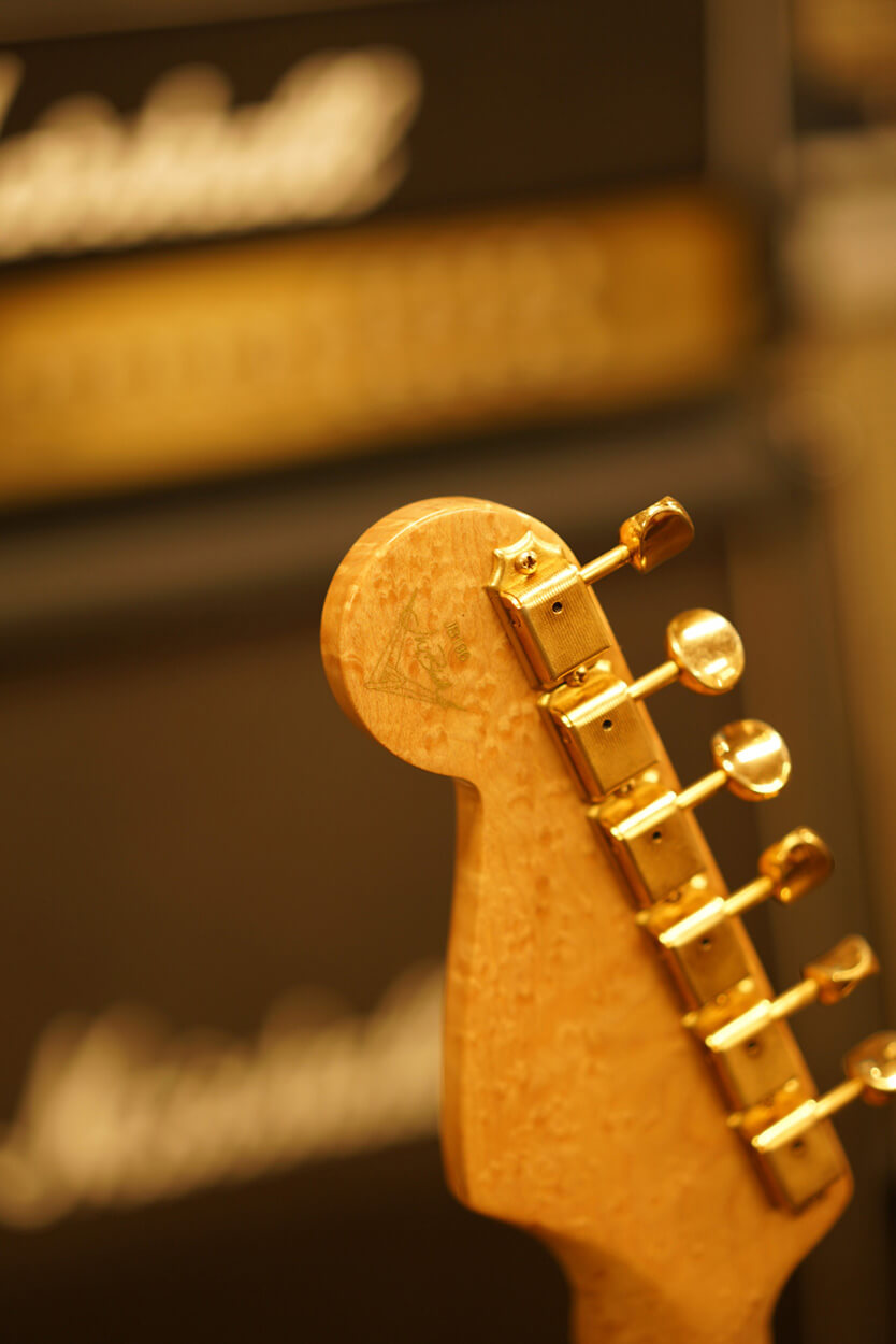 歴代Fender Master Builderの中でも取り分け人気の高いJ.W. Black氏がFender社在籍時に手掛けた1本。自身も深く携わっていたEric Clapton氏のモデルをゴールド・ハードウェア、極上のバーズアイ・メイプルなど用い製作したハイグレード仕様です。