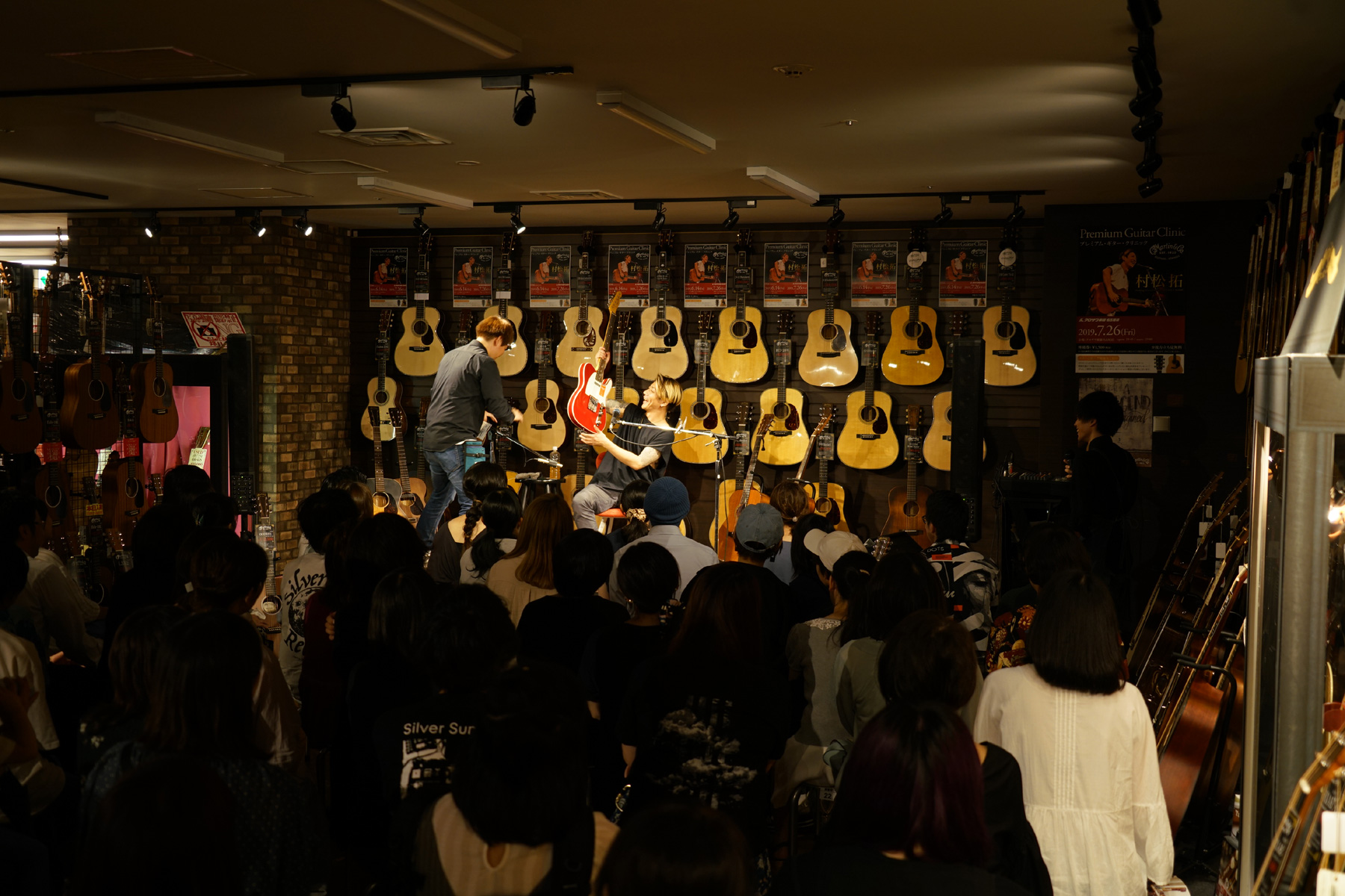 「ギターって面白いんですよ。同じ木材を使ったとしても音色が全然違う。さらには弾き込んでいく事でその人の音になる。ギターって一緒に成長していく事が出来る楽器なんですよ」と、ギターの魅力も交えた説明がなされ、普段ギターを弾かない方にも分かりやすい解説・トーク内容であった(私を含めその場にいたスタッフの心境は感謝感激で溢れていました)。