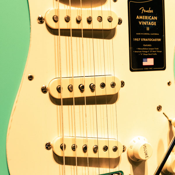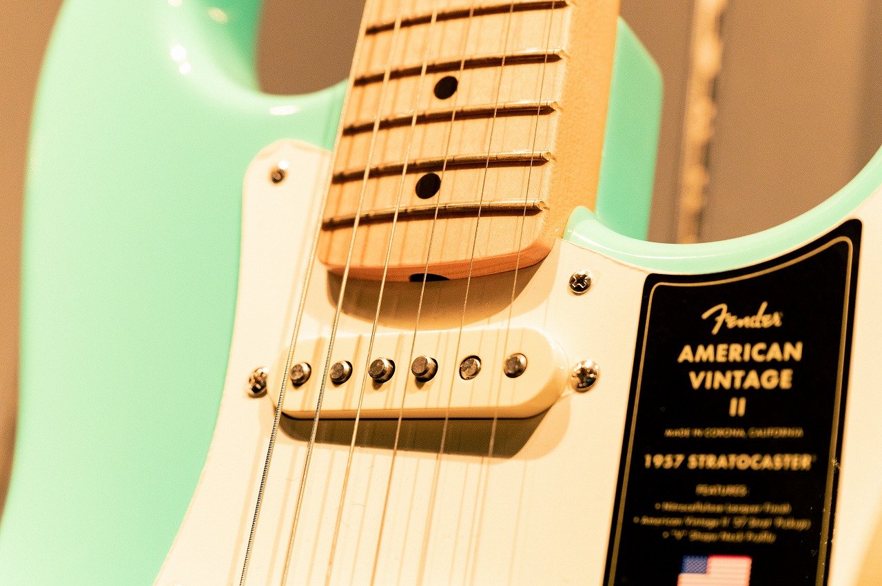 フェンダーのアイコニックなギターシェイプを讃えて開発されたAmerican Vintage II 1957 Stratocasterは、アルダーボディに2-Color SunburstとSea Foam Greenという2種類のニトロセルロースラッカーフィニッシュをラインナップしています。