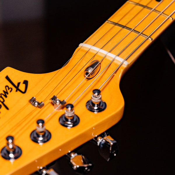 テレキャスターの最上位モデルとして72年に登場した2ハム仕様の”Deluxe”再現。 音抜けと太さを両立したワイドレンジハムバッカーの魅力が存分にお楽しみいただけるモデルです。 史実に沿ってシリーズで唯一ミディアムジャンボサイズのフレットを採用している点もポイント。
