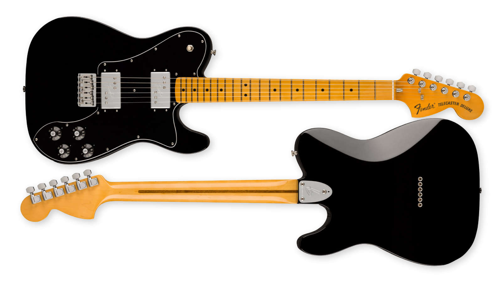 1975 "C"シェイプのメイプルネックを採用したAmerican Vintage II 1975 Telecaster Deluxeは、21本のミディアムジャンボフレットを配した9.5インチラジアスのメイプル指板を採用し、まるで1975年に舞い戻ったかのような、当時の楽器の演奏性を彷彿させます。本モデルは、ヘッドに配置された便利なBulletスタイルトラスロッドナット、Micro-Tilt™付きの3ボルト式ネックプレート、6サドル式ハードテイルブリッジ、ステンレスブロックサドル、そして当時の仕様を忠実に再現したTele® Deluxeチューニングマシンを装備しています。アルダーボディにBlack、Mocha Brown、3-Color Sunburstの3色をラインナップしています。