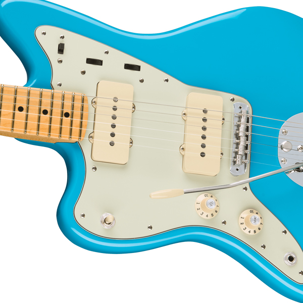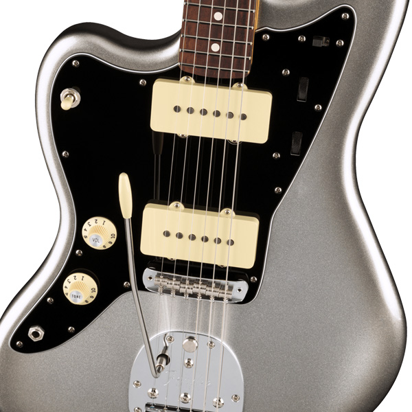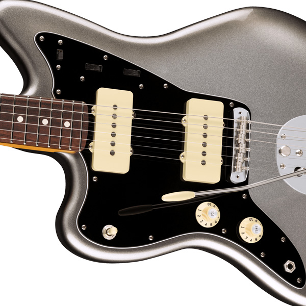 新しい V-Mod II Jazzmaster Single-Coil ピックアップは、これまで以上に繊細なトーンを奏で、Jazzmaster 特有の煌びやかなサウンドが得られます。ブリッジピックアップにはタップ機能を装備し、パワフルなサウンドと、出力の低いヴィンテージサウンドが切り替えられます。新開発のポップインアーム式 Panorama™ Tremolo システムは、滑らかなヴィブラートから過激なアーム奏法まで対応します。