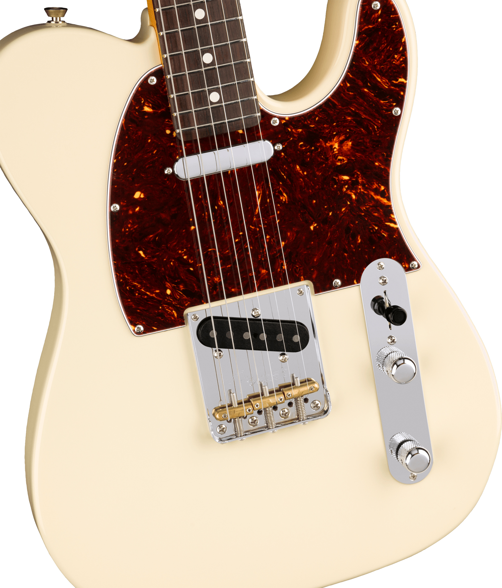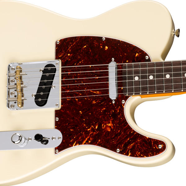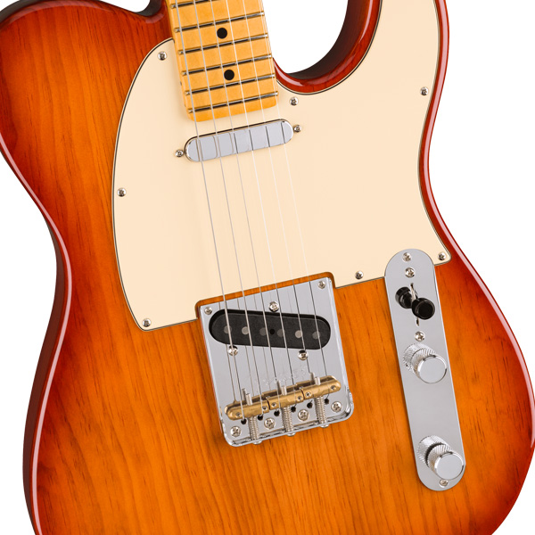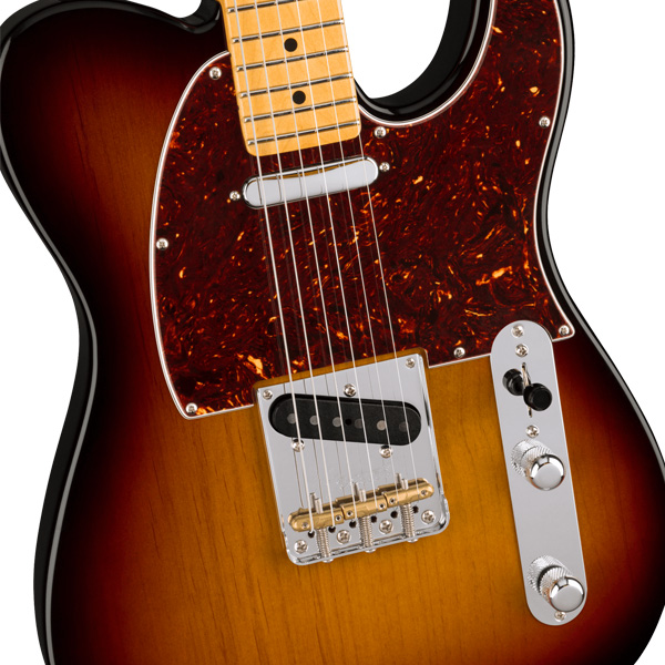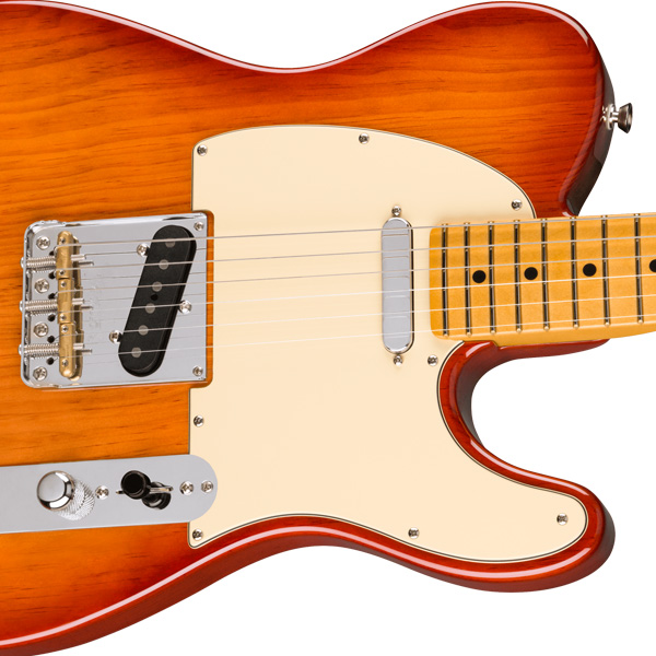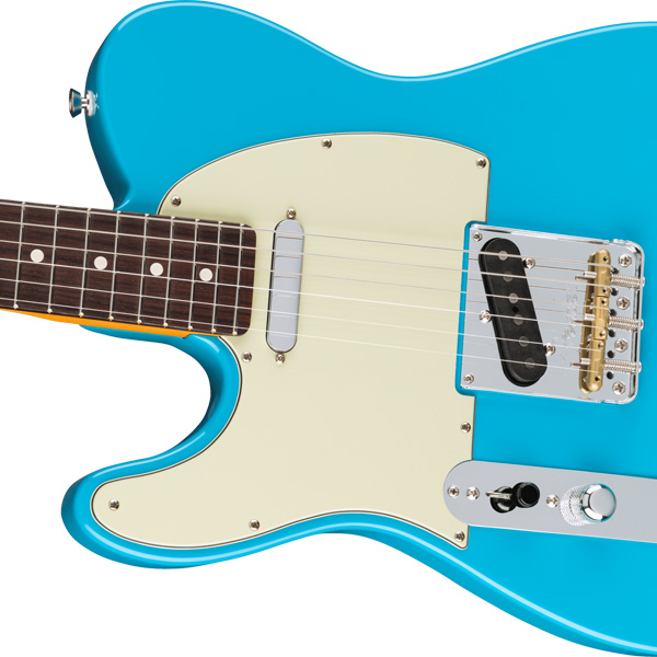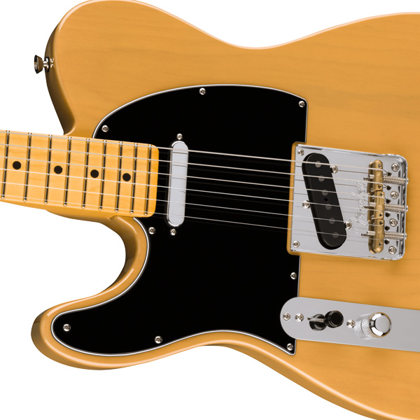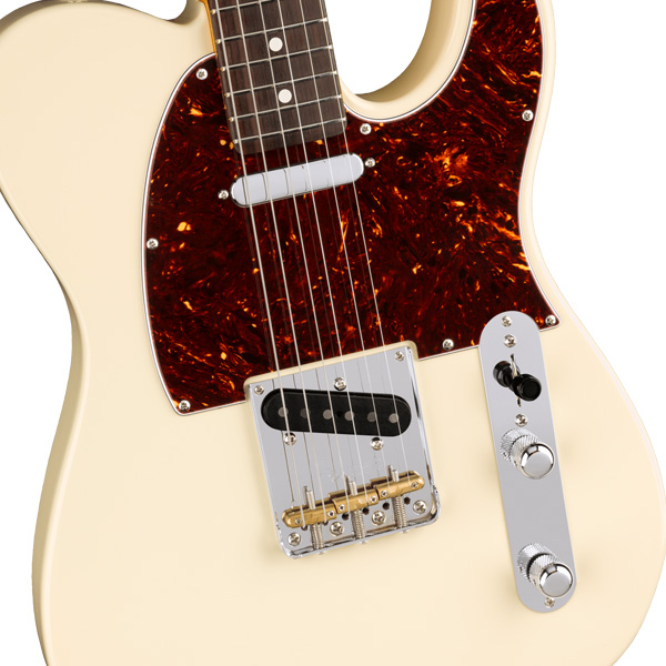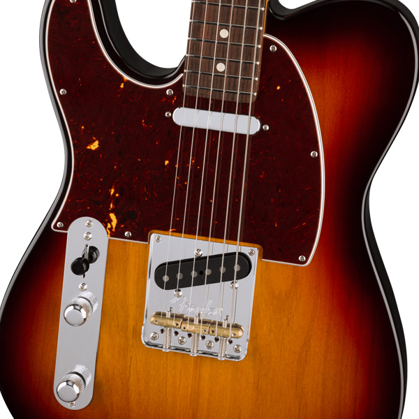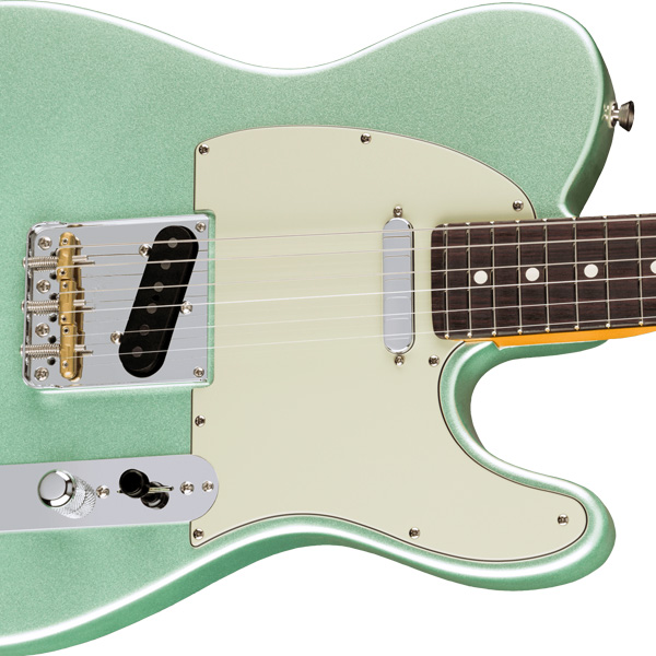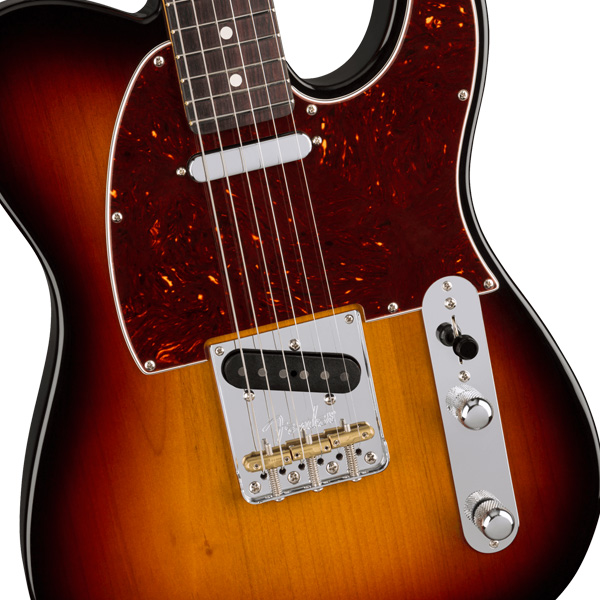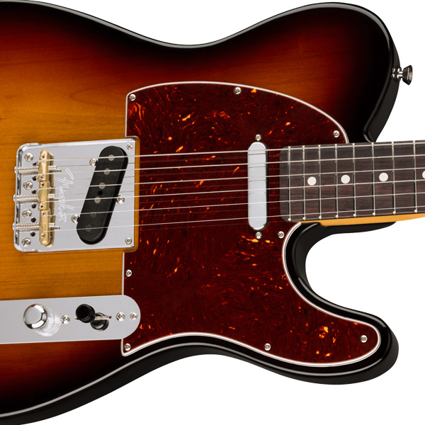 新しい V-Mod II Telecaster ピックアップは、これまで以上に繊細で、Telecaster ならではの独特なトゥワングを内包した魅力的なサウンドを実現しています。イントネーションが改善された "Bullet" サドルを備えた新しいトップロード/ストリングスルーブリッジは、各弦のイントネーションとテンション感を個別に調整することが可能で、今までの Telecaster ブリッジの中で最も快適でフレキシブルなブリッジです。