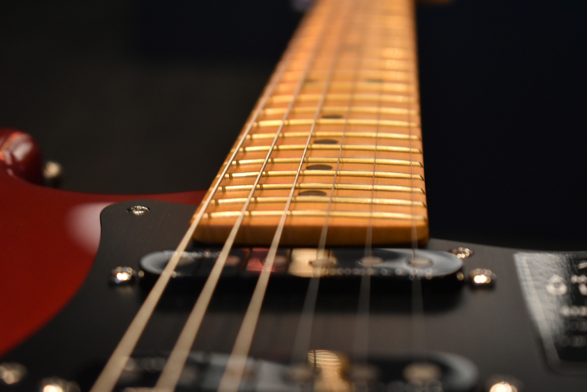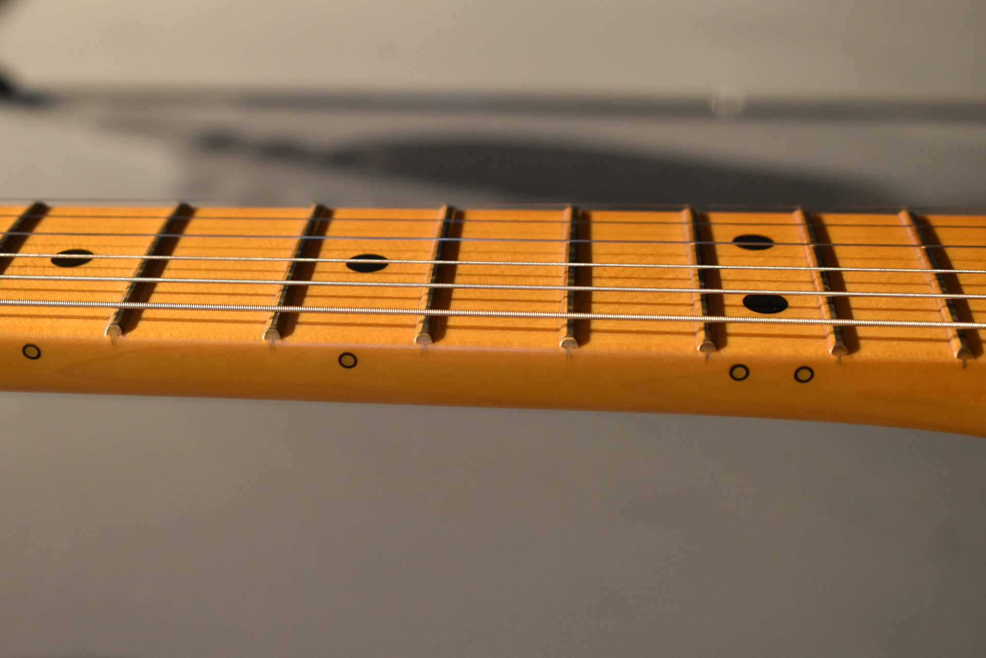 スムーズな演奏性を実現する10~14インチのコンパウンドラジアス指板は、ナット付近で丸みを帯び、ハイポジションに近づくにつれてフラットな形状になります。