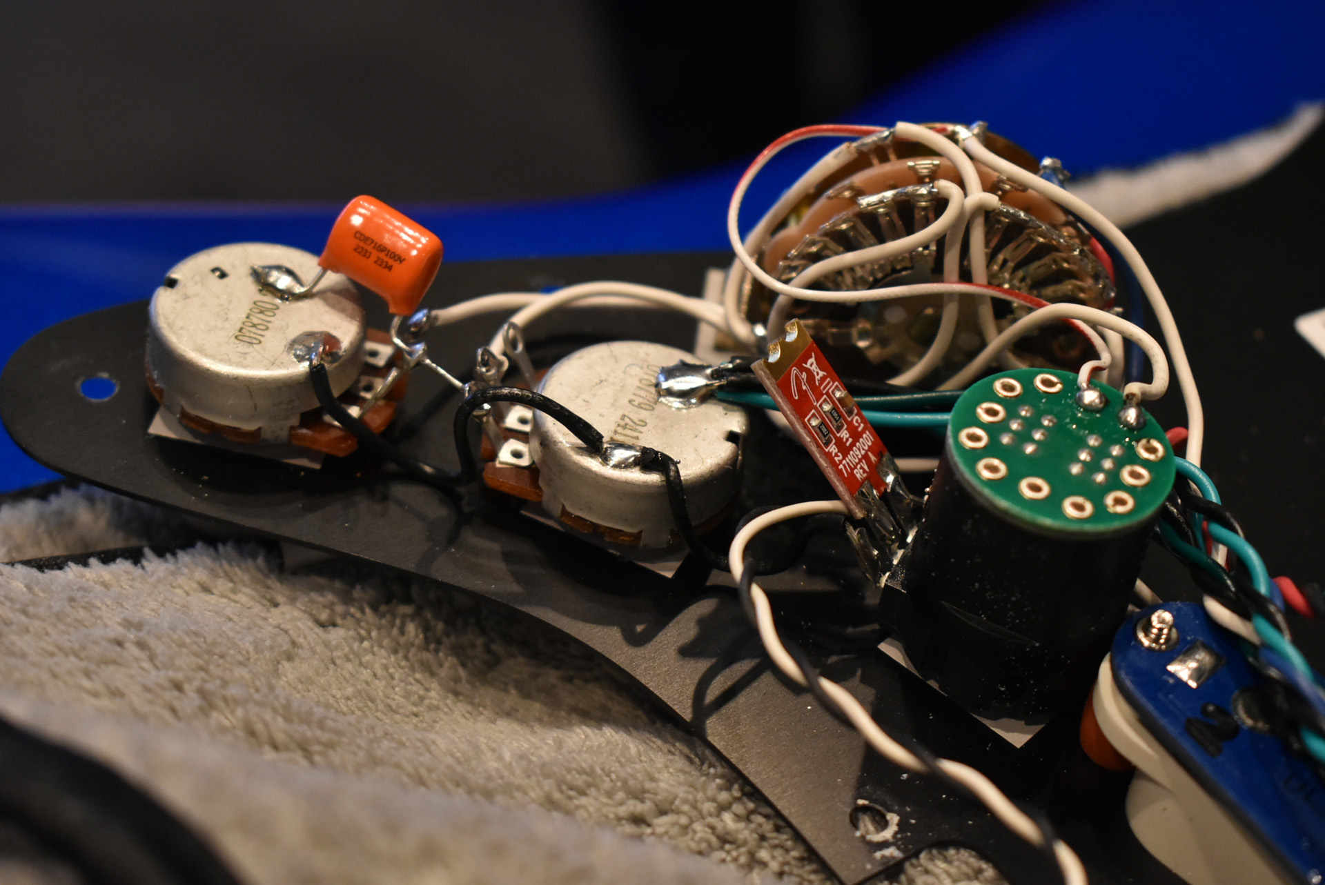 ボディーカラーに合わせ、ゴールド、シルバー、ブラックのアノダイズドガードをマウント。ノイズを削減するだけでなく、サウンドのコントロールにも大きな役割を果たしています。
