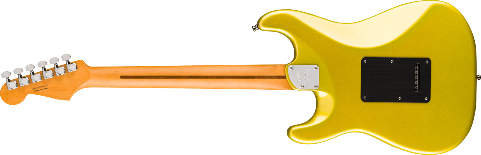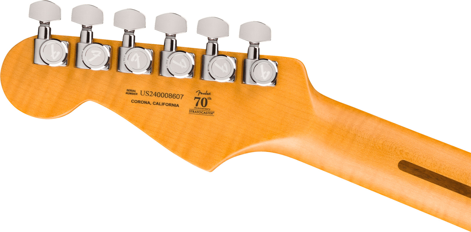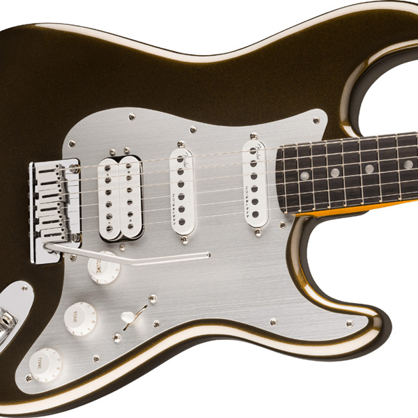 American Ultra II Stratocaster® HSSは、厳選されたアルダーボディに深めのボディコンターが施されています。クォーターソーンメイプルネックはModern "D"ネックシェイプで、ネックバックは触り心地の良いUltra Satinフィニッシュで仕上げられています。10〜14インチコンパウンドラジアのエボニーまたはクォーターソーンメイプル指板は、エッジを丁寧にロールオフ処理したUltraロールドエッジが採用されており、ミディアムジャンボフレット、蓄光式Luminlay®サイドドット、Graph Tech® TUSQ®ナットを装備しています。テーパードネックヒールと深いボディコンターにより、ハイポジションへの容易なアクセスが可能です。
