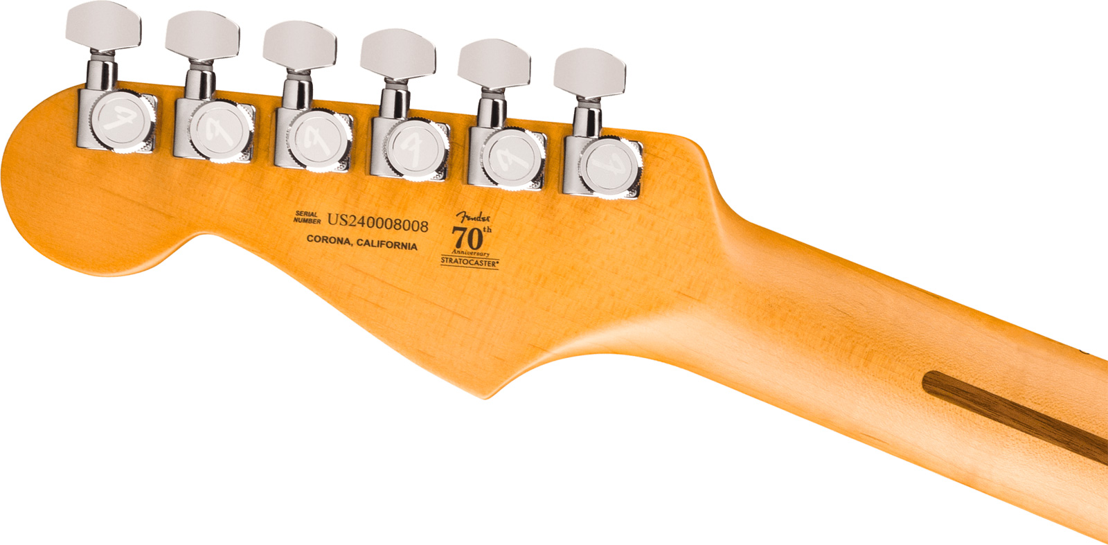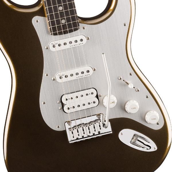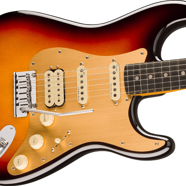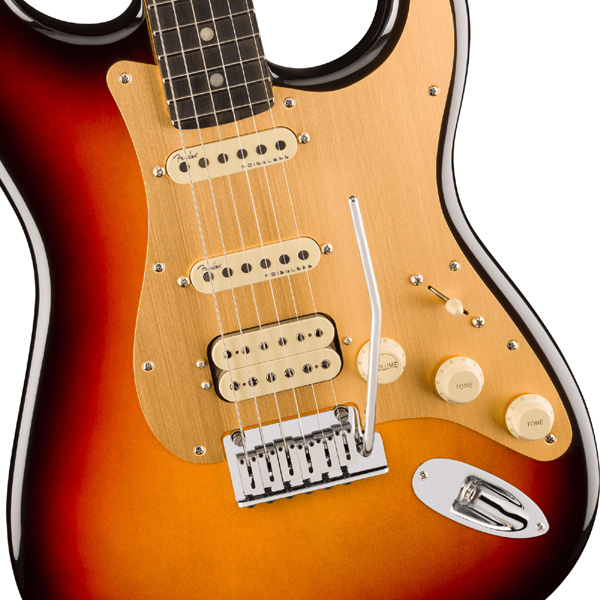 American Ultra II Stratocaster® HSSは、2基のUltra II Noiseless™ Hot Strat®ピックアップとHaymaker™ハムバッカーを装備し、甘いクリスタルのように澄み渡ったクリーンから灼熱のリードサウンドまで、ハムノイズとは無縁の極上のトーンを提供します。特許取得済みのS-1™スイッチは、Haymakerをコイルスプリットし、サウンドのバリエーションをさらに広げます。ポップインアーム付き2点支持American Ultraシンクロナイズドトレモロ、ポリッシュ仕上げのステンレスブロックサドル、コールドロールドスチールブロック、デラックスロッキングチューニングマシン、ソフトタッチノブ、1-plyアノダイズドピックガードなど、高い実用性を誇る機能を搭載しています。