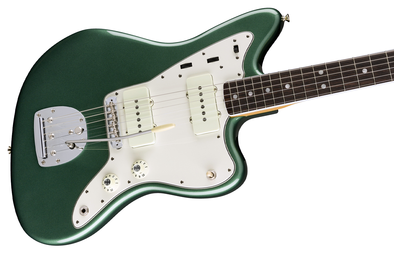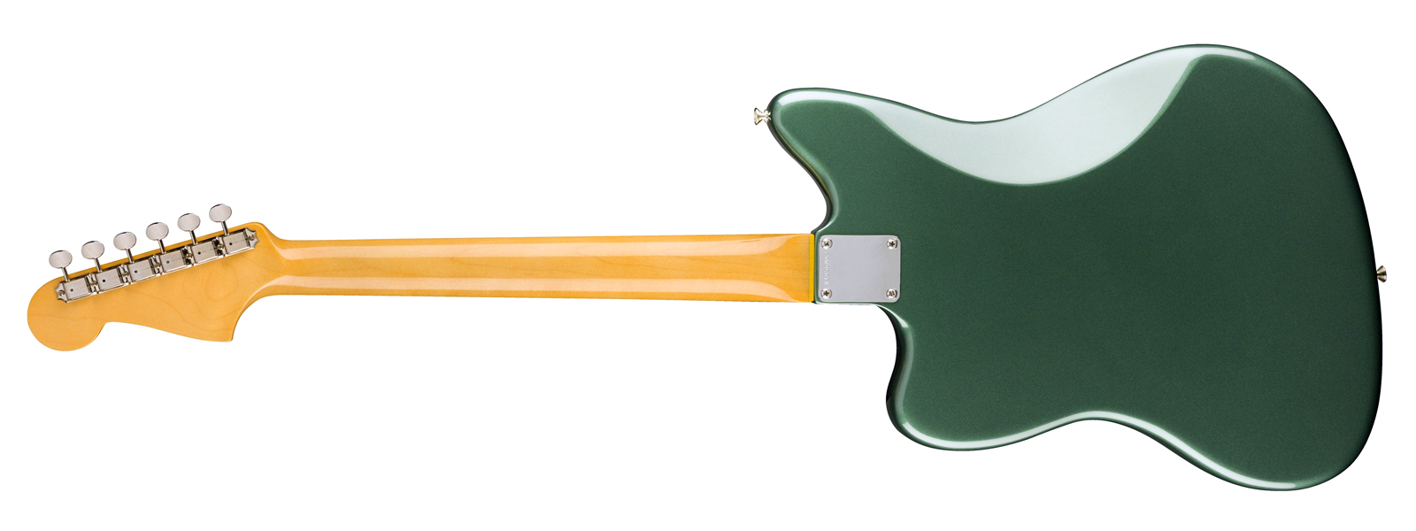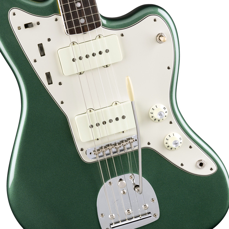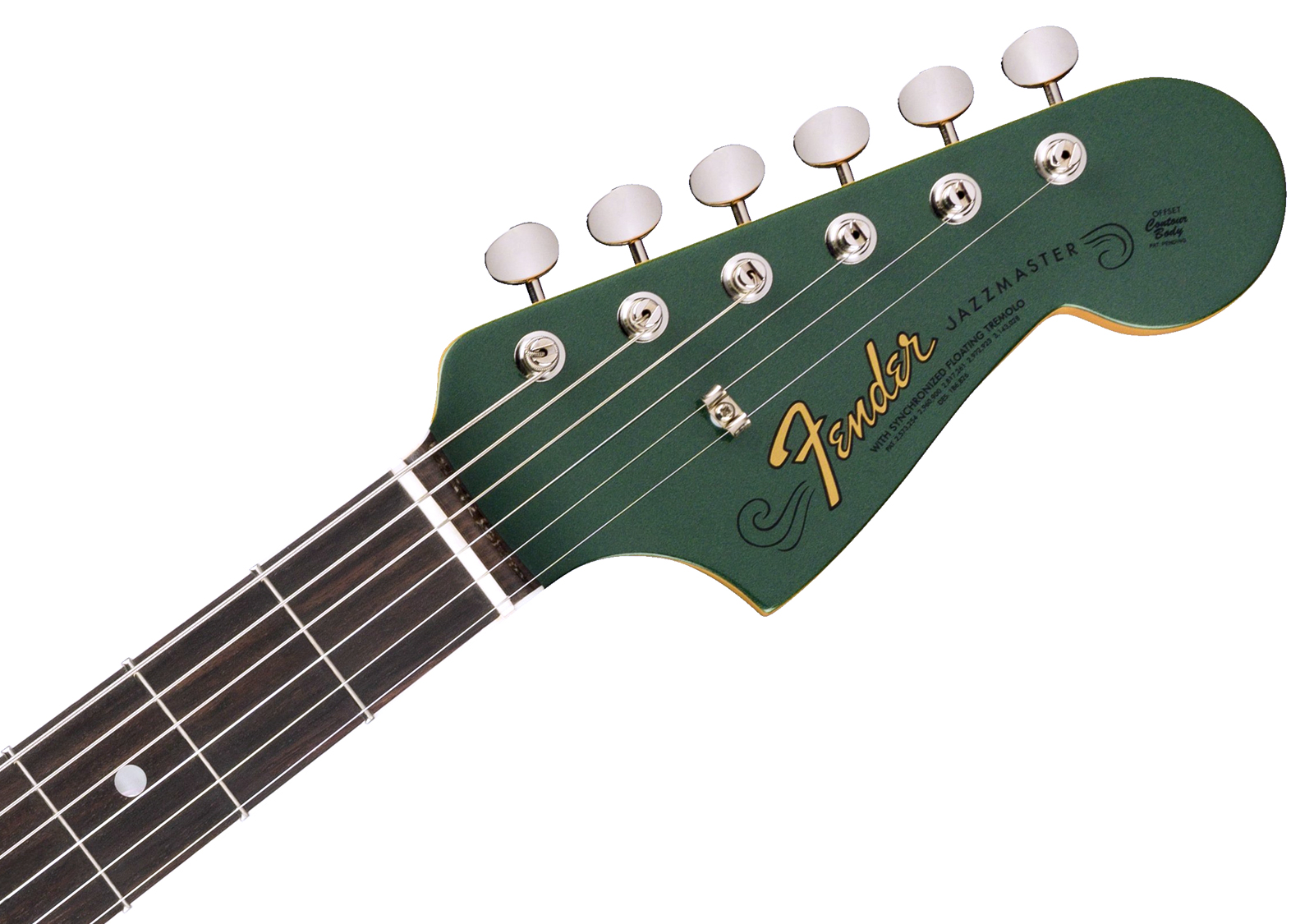 1960年代のフェンダーフィール溢れるレアカラー「シャーウッドグリーンメタリック」。ヴィンテージのレイクプラシッドブルーの一部の個体のみに起こる経年変化を再現したカラーです。カラー以外はレギュラーの American Original '60s Jazzmaster と同仕様で、お値段も通常カラーと変わらない価格ながら、サイドバインディングが施され、もちろんマッチングヘッドストック仕様という非常にお買い得な1本に仕上がりました。