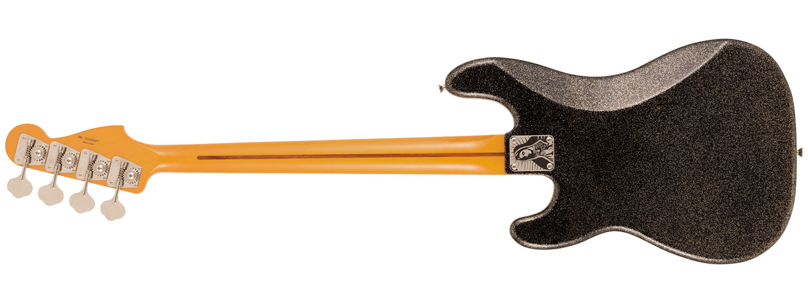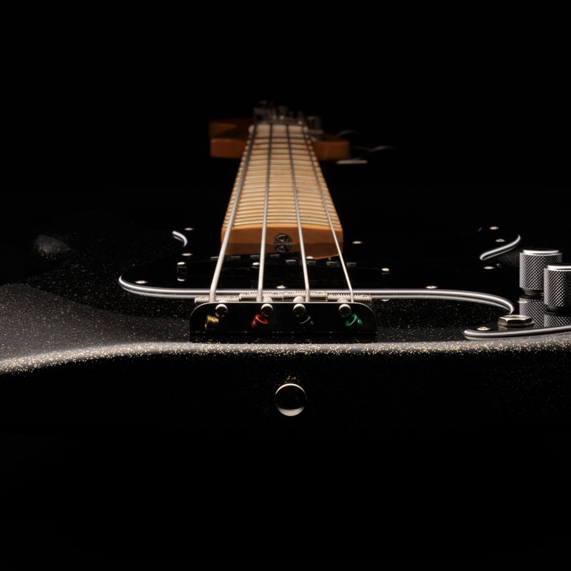 Jの音楽への哲学を表現したリバースヘッドはもちろん、バイクを愛するJが70年代のヴィンテージヘルメットからインスパイアされたというオリジナルカラー、Black Goldを再現しています。角度によって見え方の違うこのカラーはステージのライティングにより様々な印象を与えます。Custom Shop製からプロファイルされたワンピースメイプルネックは、7.25インチラディアス、Narrow Tallフレットを採用し、50年代のグリップを踏襲しつつもナット幅を42mmに抑えることにより長時間のステージでもスムースな演奏を可能にするこだわりの仕様となっています。サウンド面ではアッシュボディーと本モデルのために新開発されたJ Custom P Bass® Pickupの組み合わせが、ドライブさせても埋もれない豊かなミッドレンジを出力します。